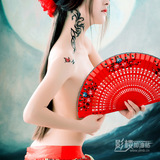 Классическое фото косметическое даоосское вентилятор красный костюм бамбук фанат искусство фото правильный деревянный вентилятор