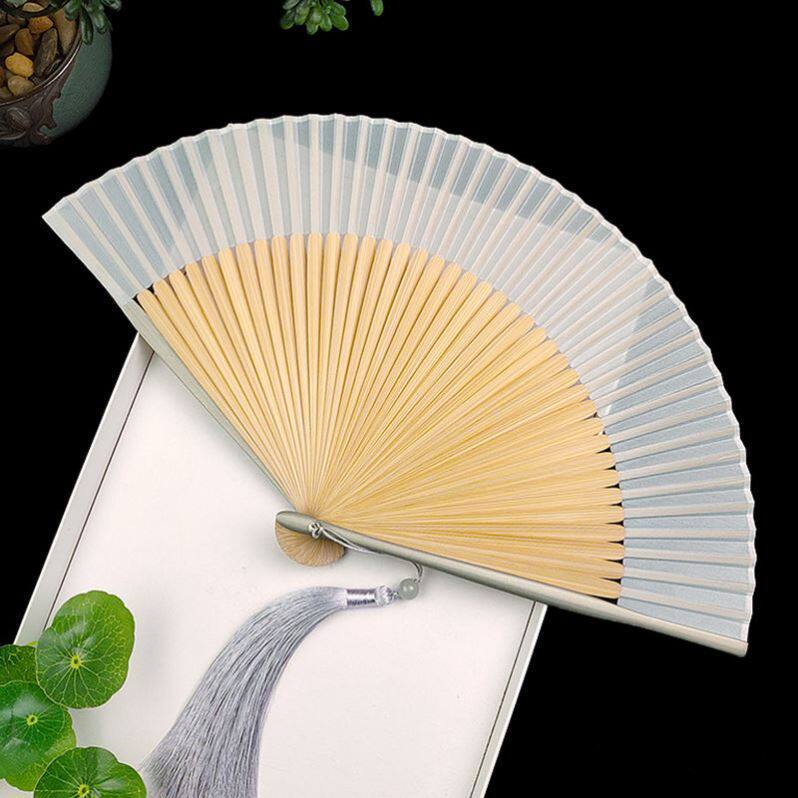 Чисто -розовый шелковый вентилятор складной вентилятор китайский стиль серая краска кромка бамбука и ветер Летний день ежедневно простые складные вентиляторы