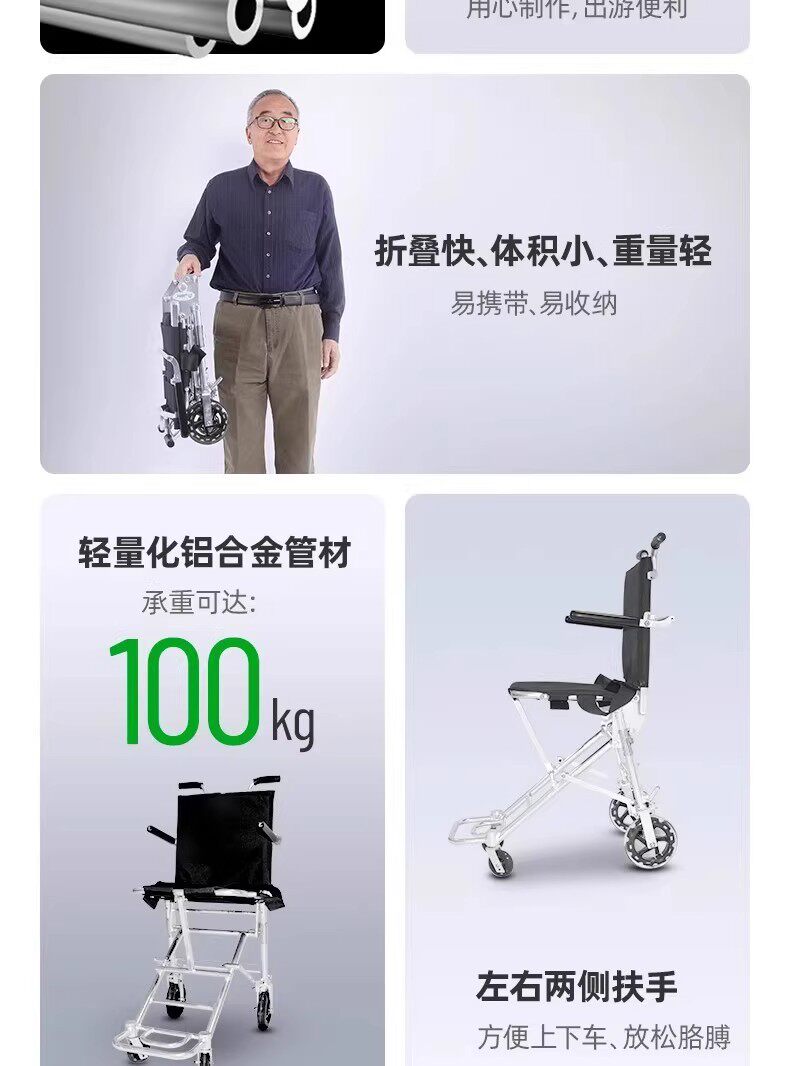 Самолет для пожилых людей, переносной портативный складной металлический браслет, тележка, алюминиевый сплав