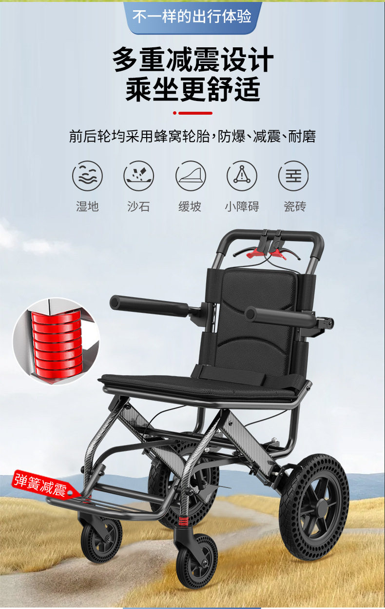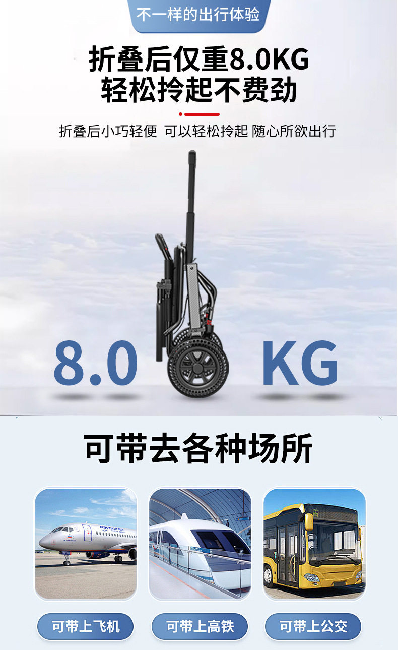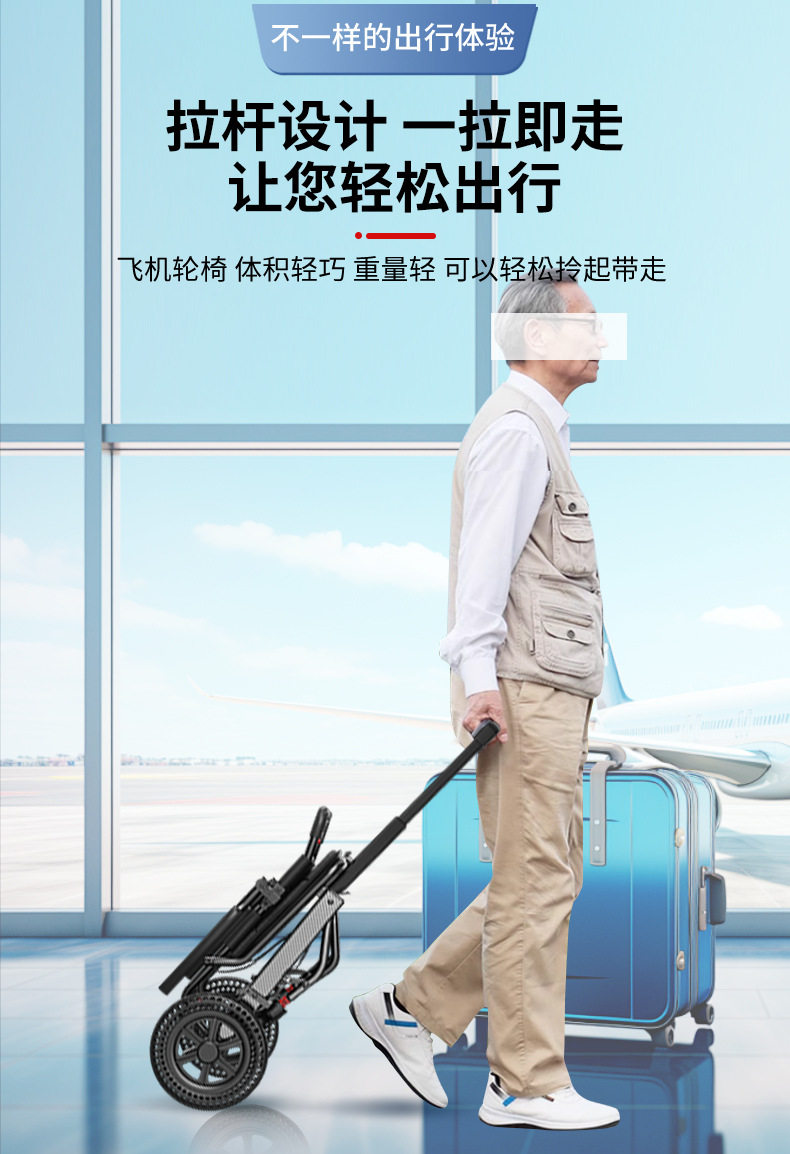 Складная, сверхлегкая, небольшая портативная дорожная тележка для пожилых людей во время путешествий с пожилыми людьми.