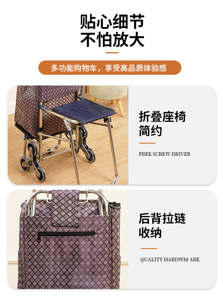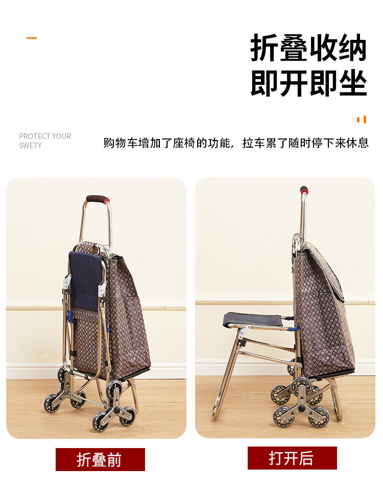 Пожилые автомобили с покупкой складывания сиденья, складывающие овощные овощные овощные овощные стали, ручную корзину, ручную корзину, легкий автомобиль с многоупотреблением.