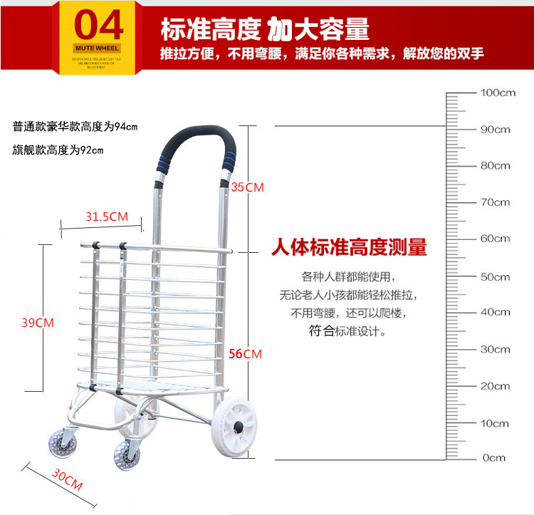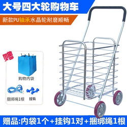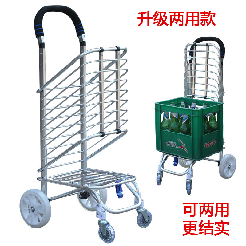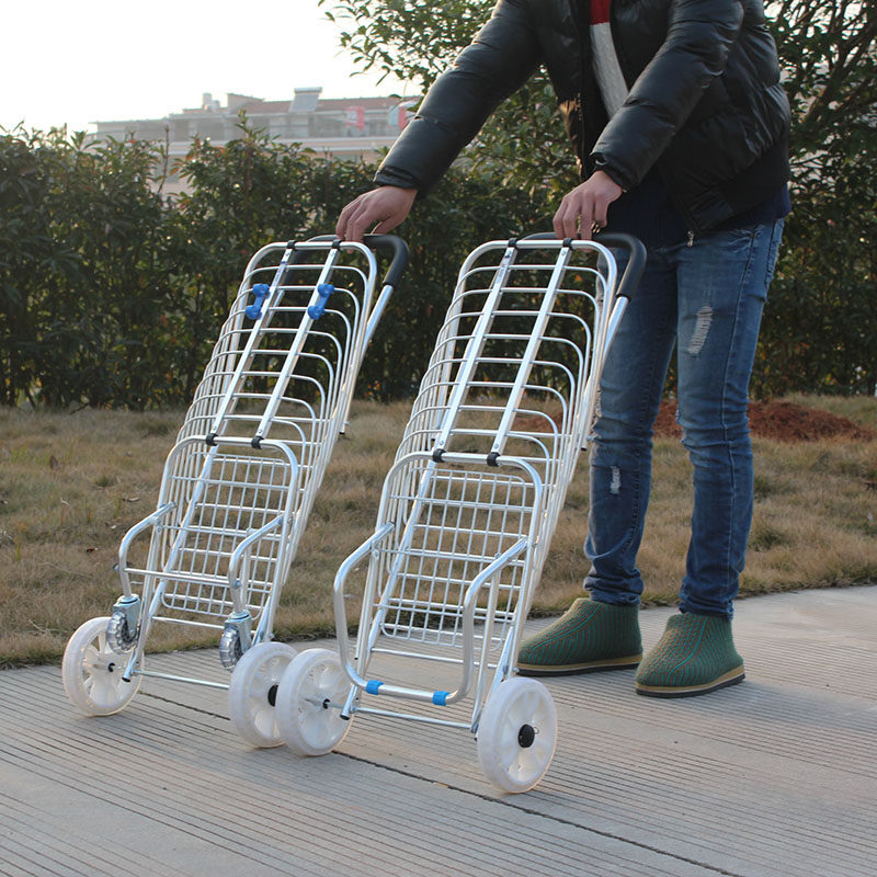 Металлическая корзина для покупок, складная продуктовая тележка на четырех колесах, портативный прицеп для домашнего использования для пожилых людей, алюминиевый сплав