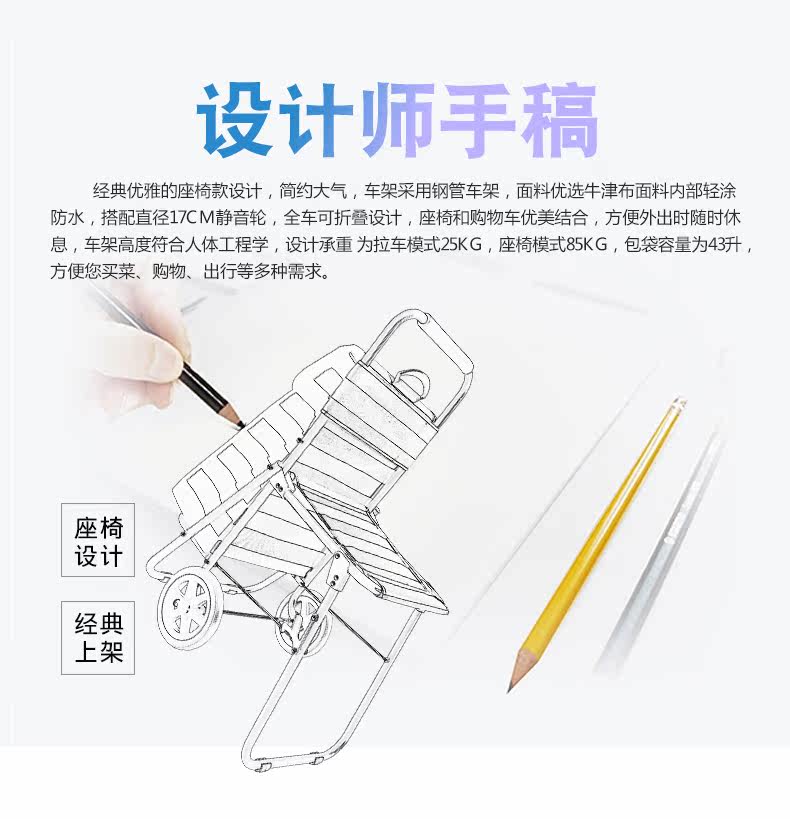 Складная корзина для покупок, портативное кресло, продуктовая тележка, 7 дюймов
