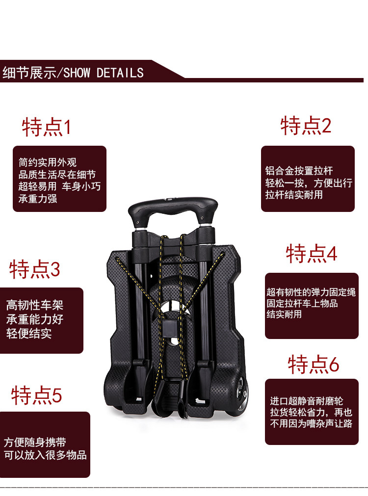 [Особенности]: Легкий и долговечный, может нести 35 кг, является хорошим помощником для ваших обычных покупок и транспорта. Особенно подходит для пожилых людей покупать еду и владельца магазина, чтобы получить товары.