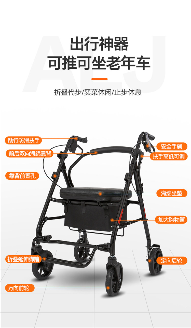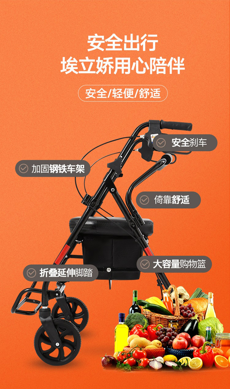 Складная тележка с сидением, корзина для покупок, ходунки