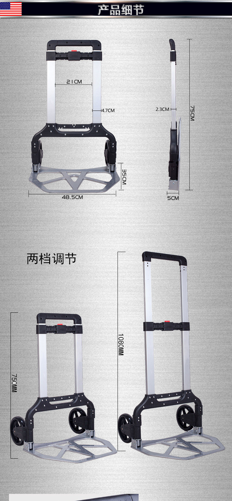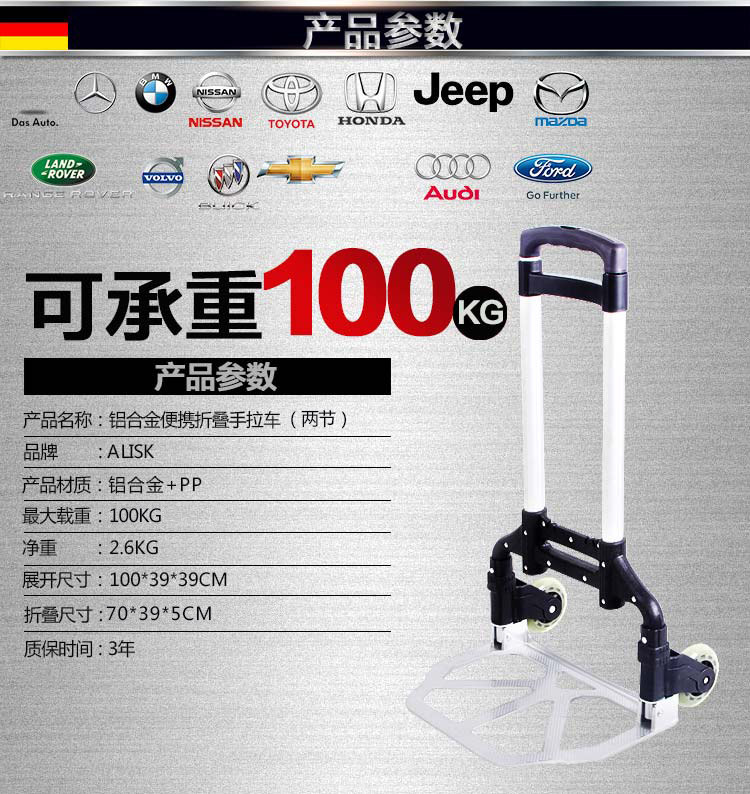Складная багажная тележка, металлическая портативная корзина для покупок для домашнего использования, прицеп, алюминиевый сплав