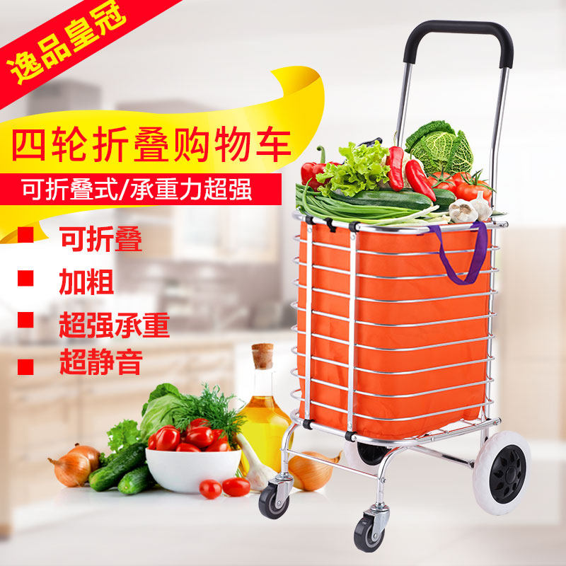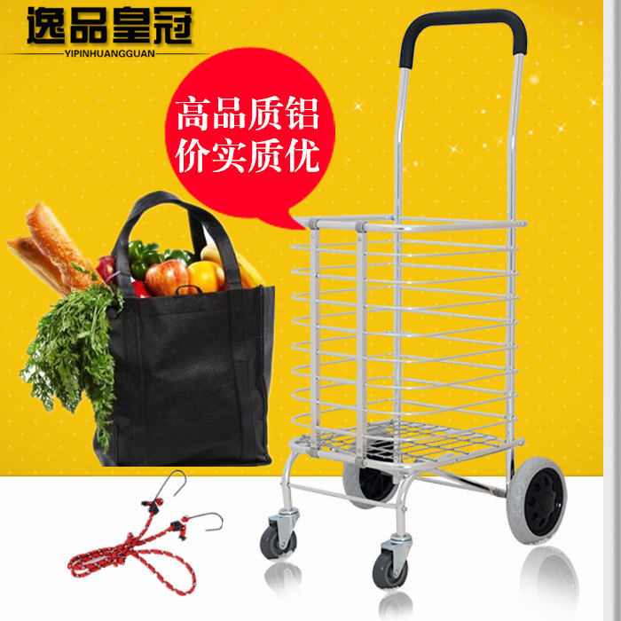 Продуктовая тележка, металлическая складная корзина для покупок на четырех колесах для пожилых людей, портативный прицеп, алюминиевый сплав
