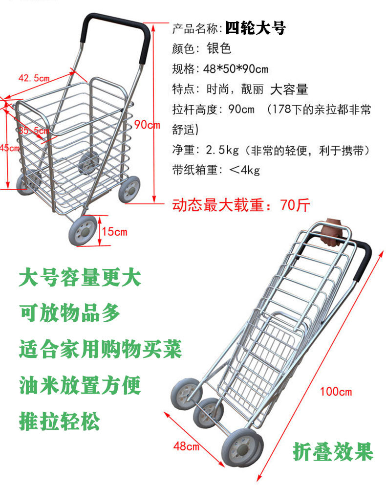 Чтобы удовлетворить больше потребностей клиентов в покупках, компания теперь разрабатывает недавно разработанную большую точность. После складывания она не занимает место. Она использует четыре больших колеса, чтобы пройти через новый тип корзины с помощью хорошего секса.Предоставьте две модели, чтобы удовлетворить больше потребностей.