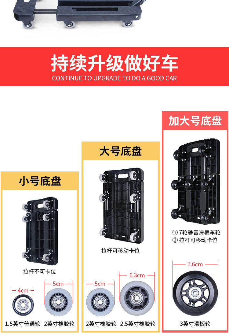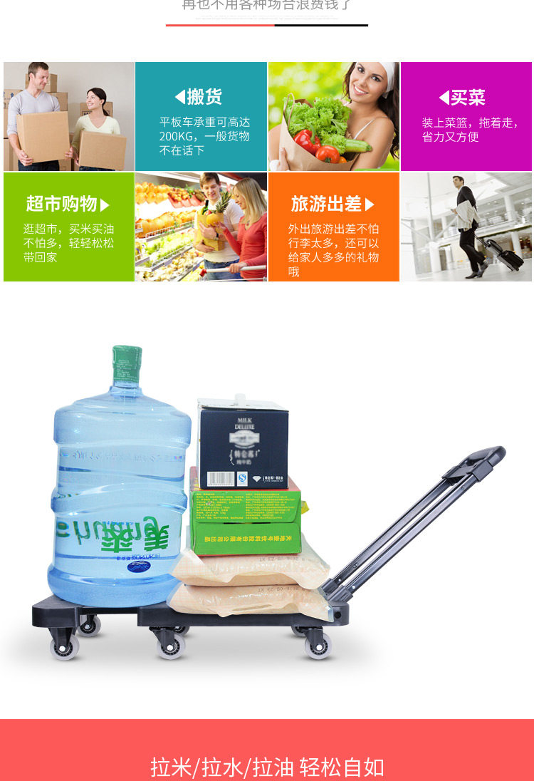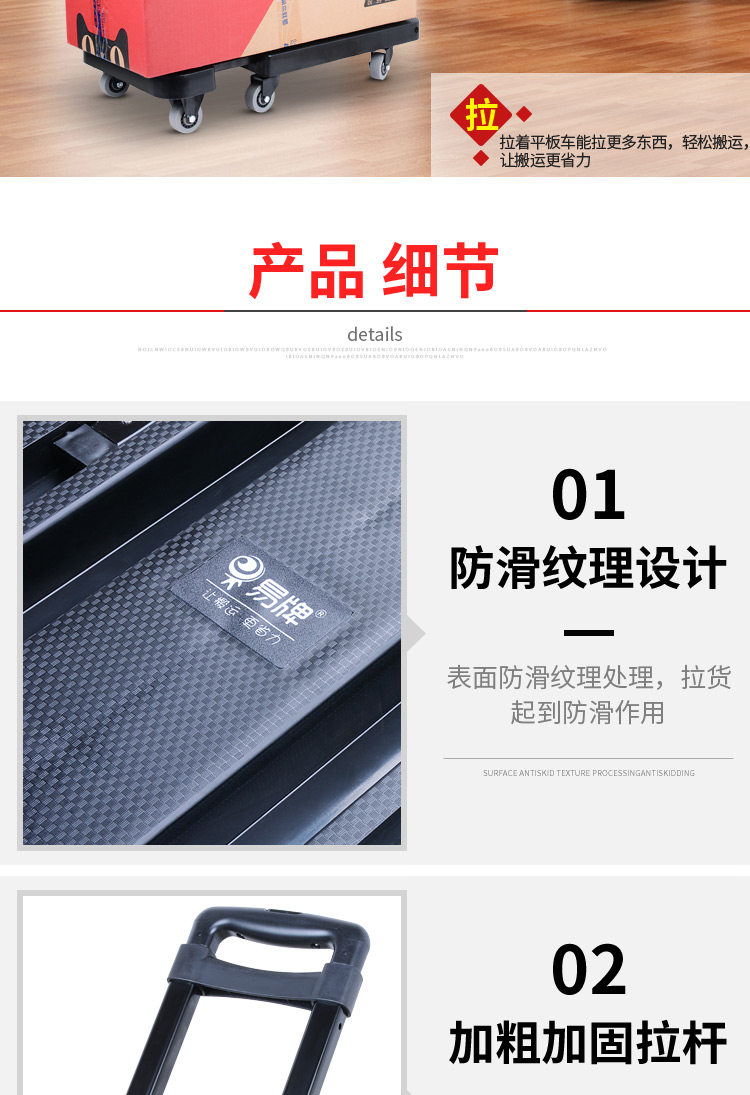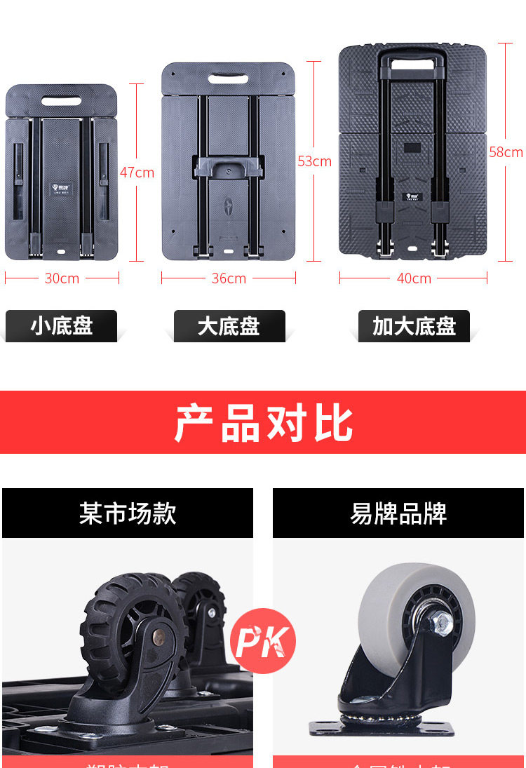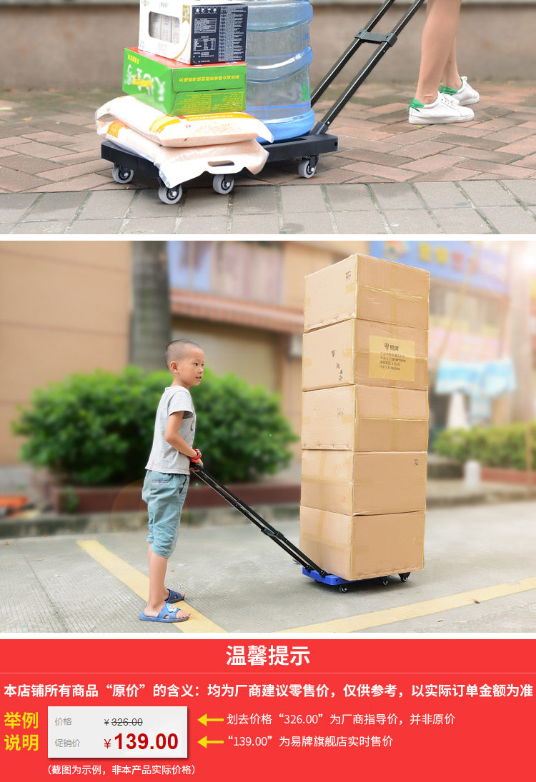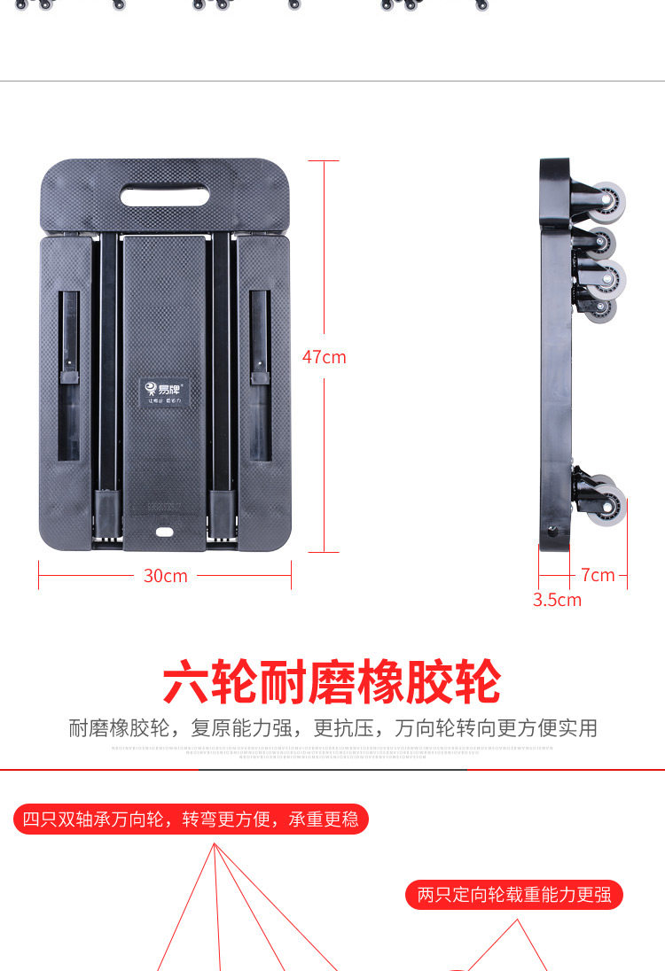 易牌 Универсальная тележка, складной багажный прицеп для домашнего использования, поворотные колеса