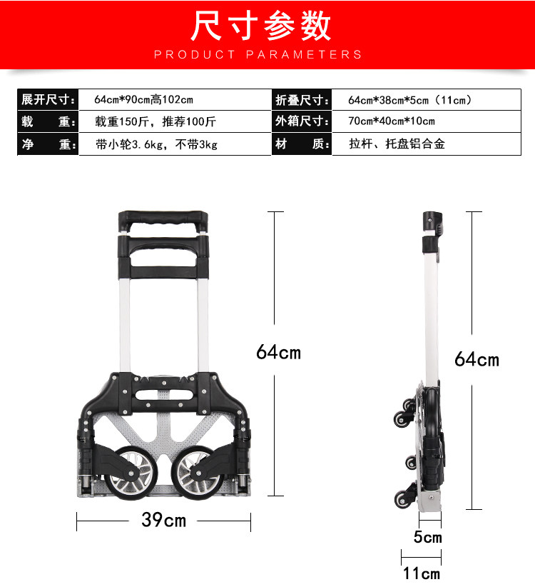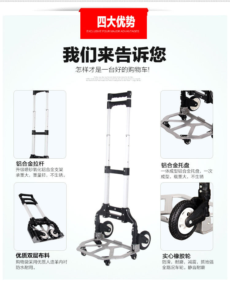 Металлический чемодан, складная корзина для покупок, прицеп, портативная багажная тележка, алюминиевый сплав