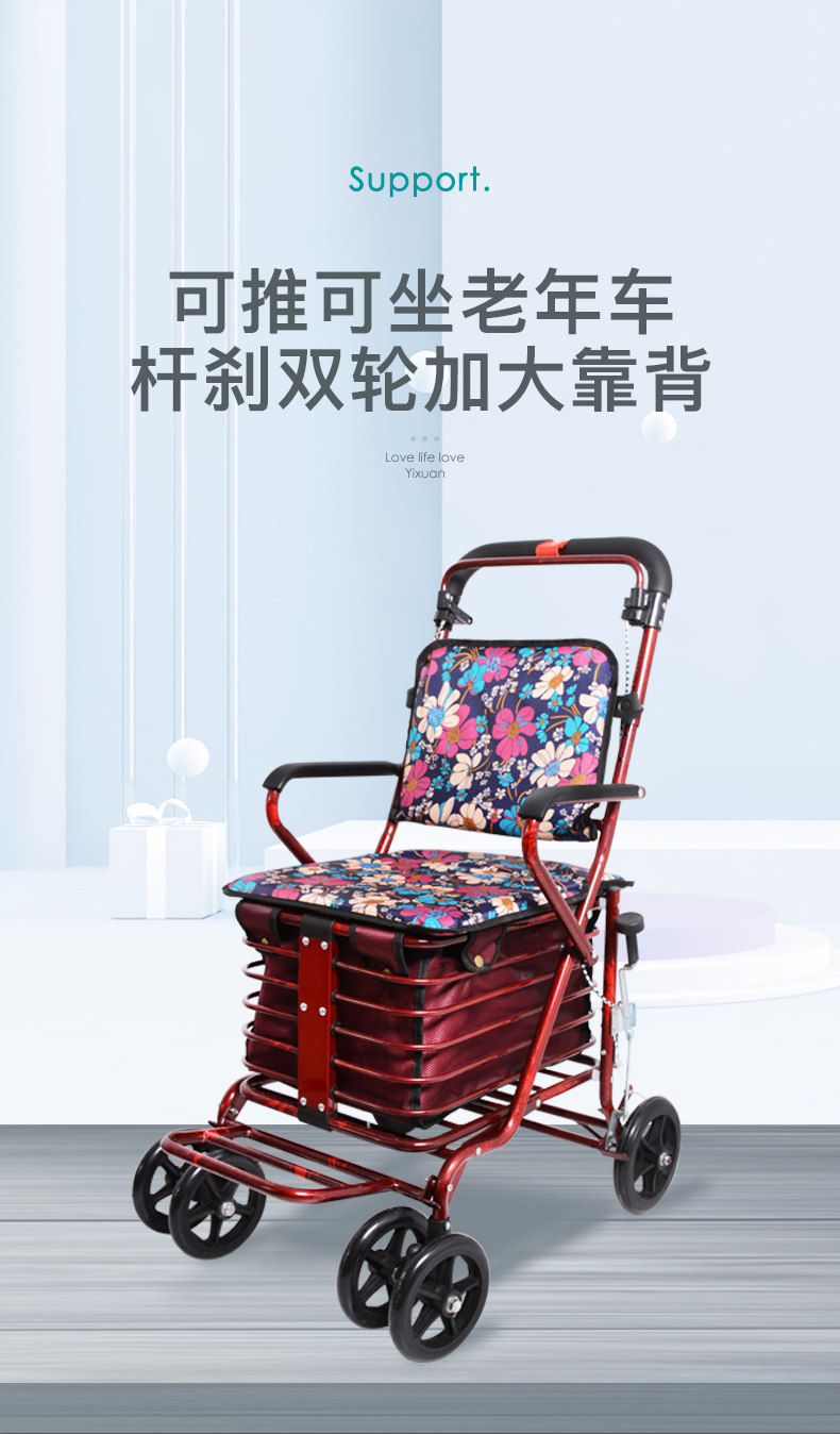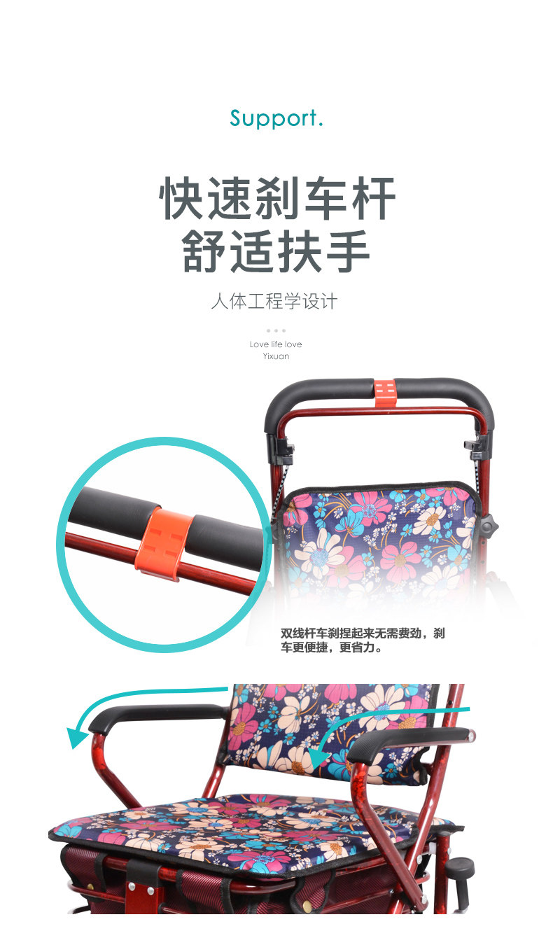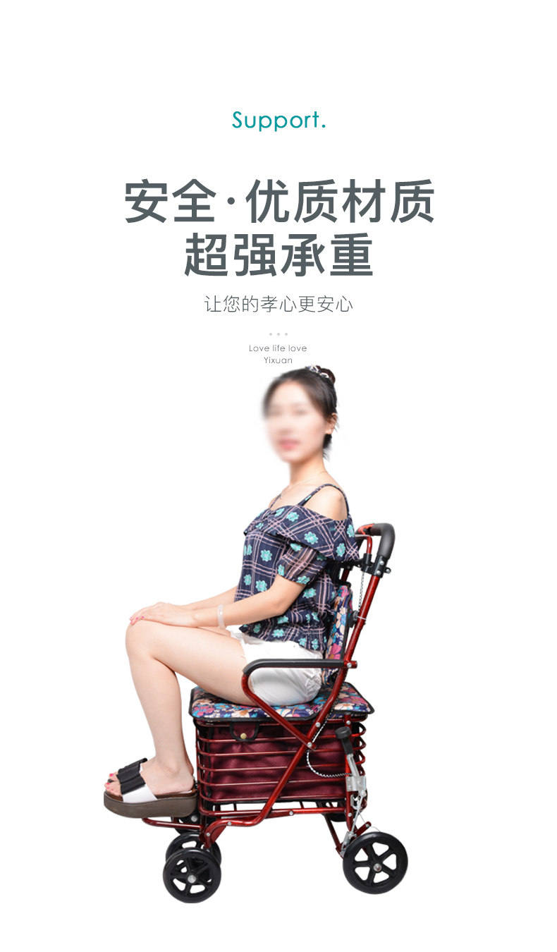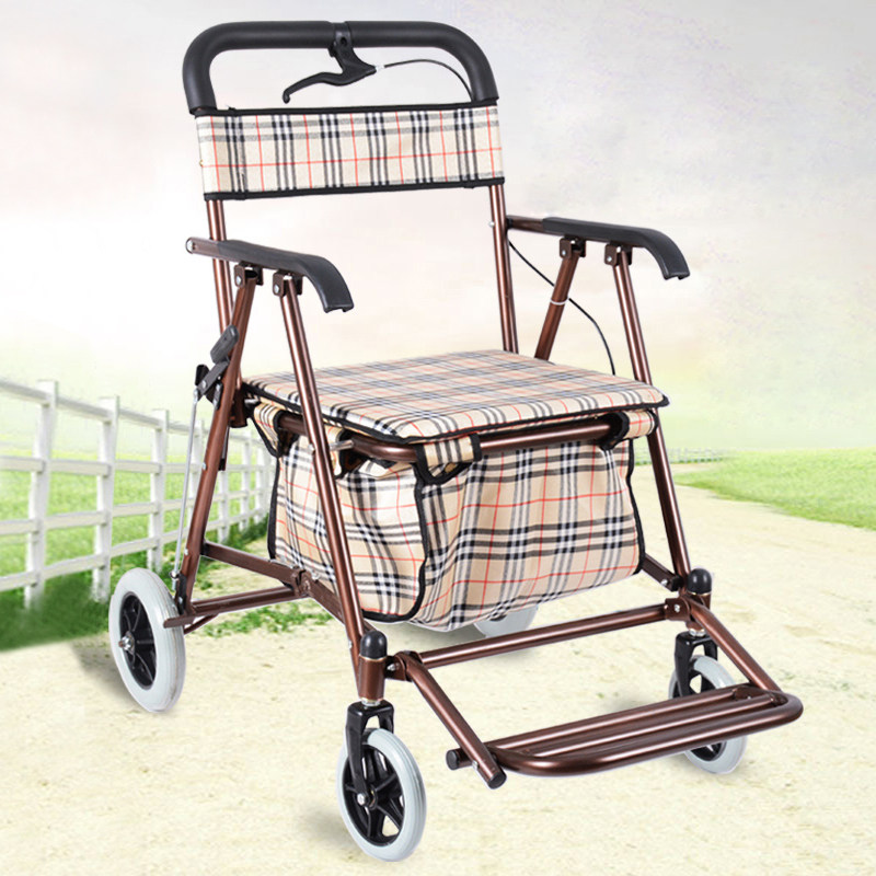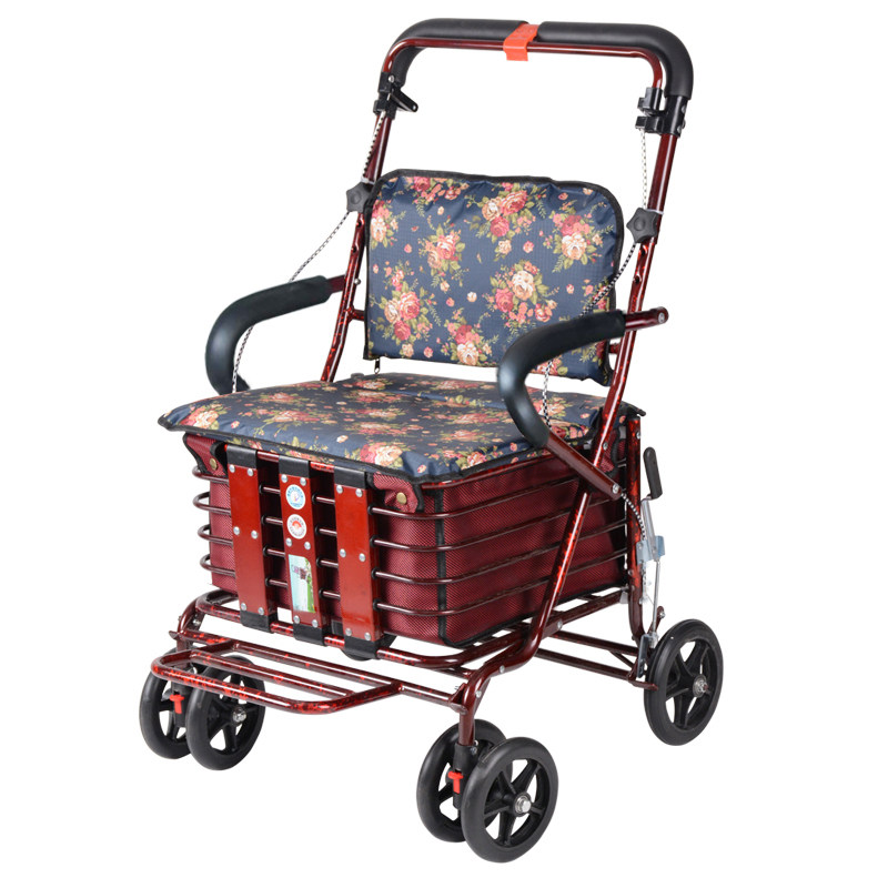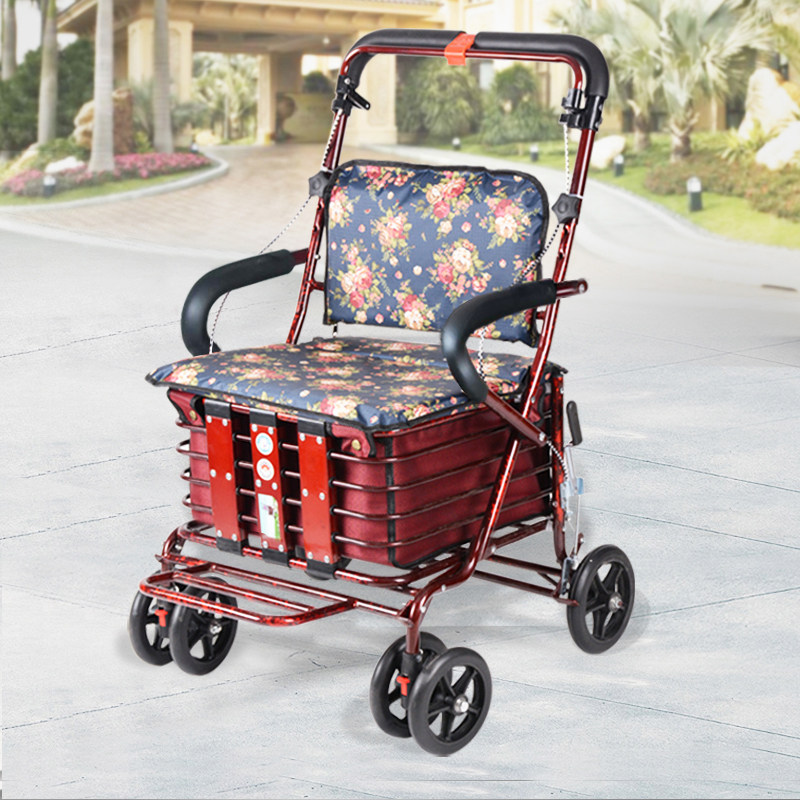 Складная корзина для покупок для пожилых людей, ходунки на четырех колесах, портативный прицеп с сидением, тележка