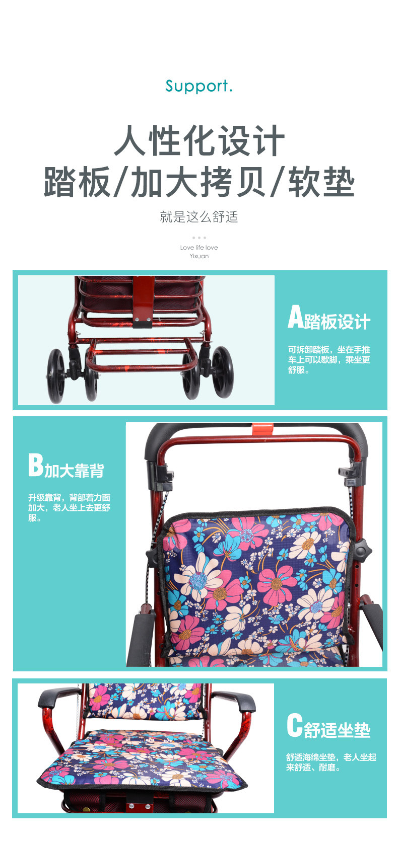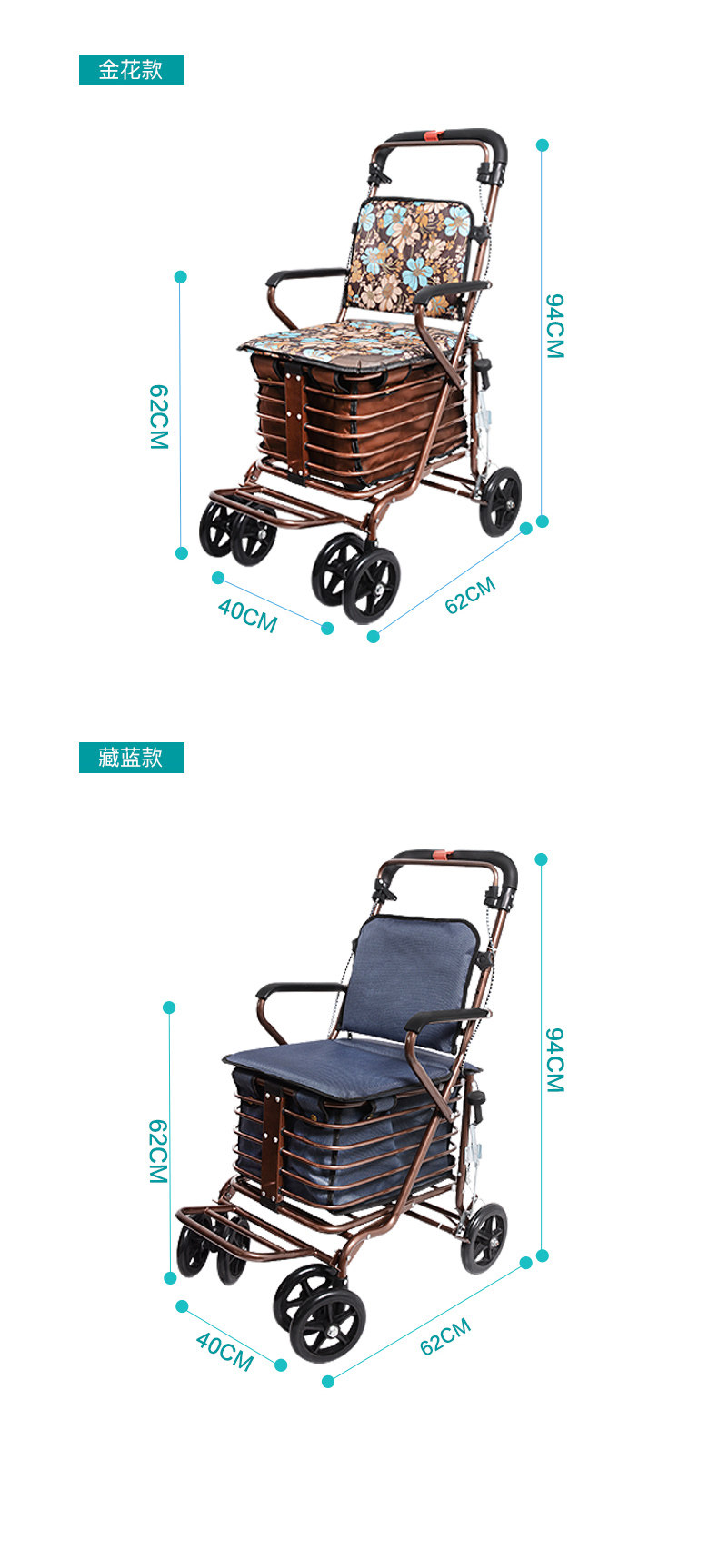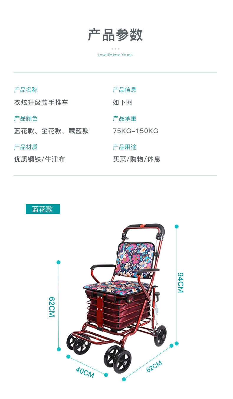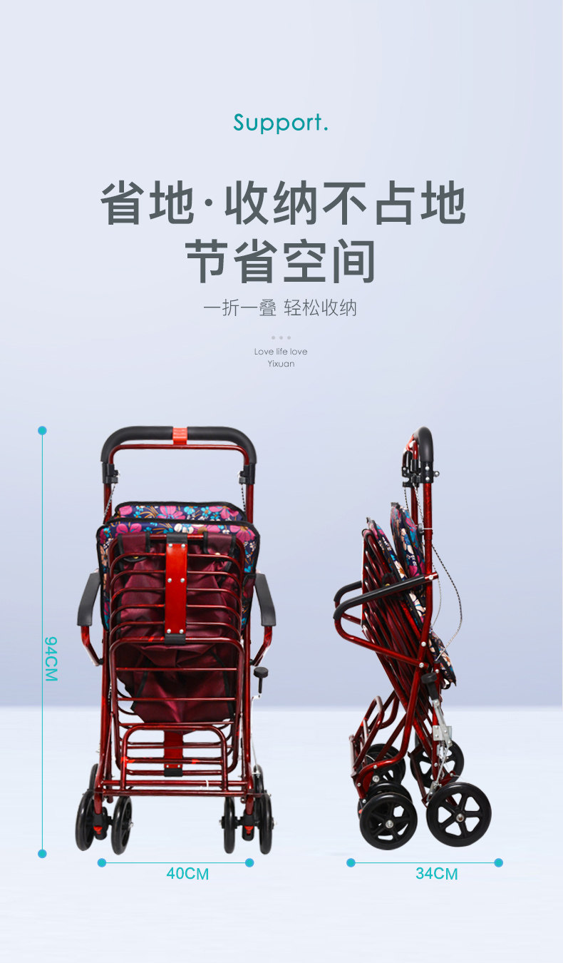 Складная корзина для покупок для пожилых людей, ходунки на четырех колесах, портативный прицеп с сидением, тележка