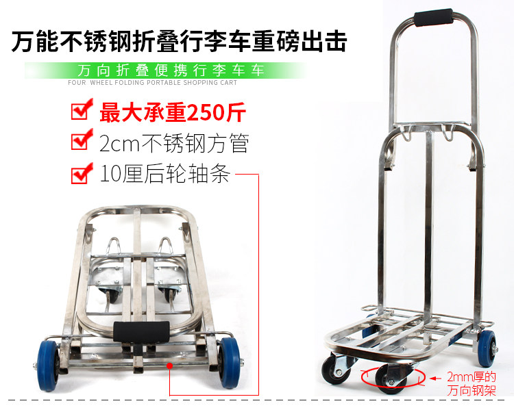 Универсальная складная багажная тележка из нержавеющей стали, корзина для покупок
