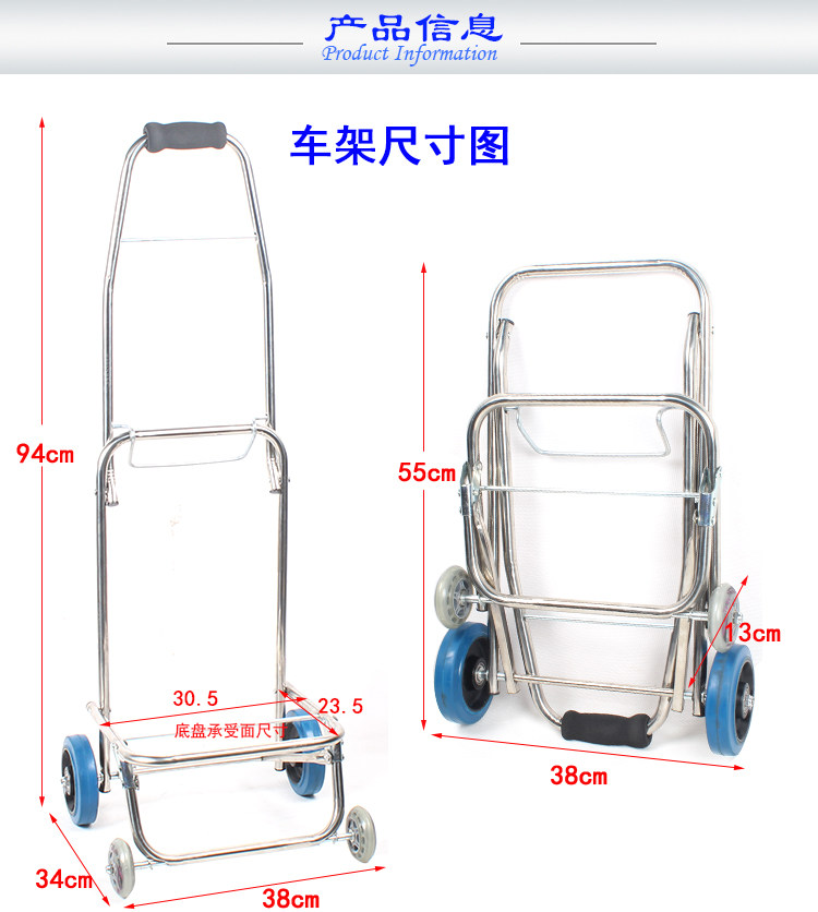Корзина для покупок, чемодан, продуктовая тележка, тканевый мешок из нержавеющей стали, багажная тележка