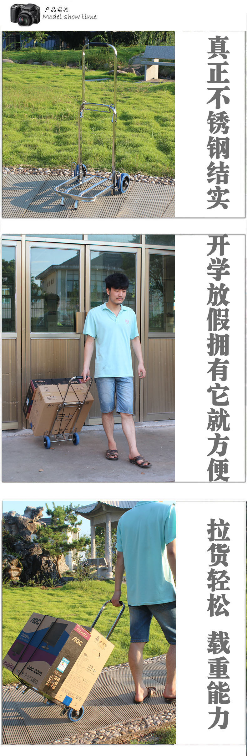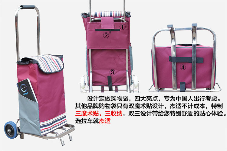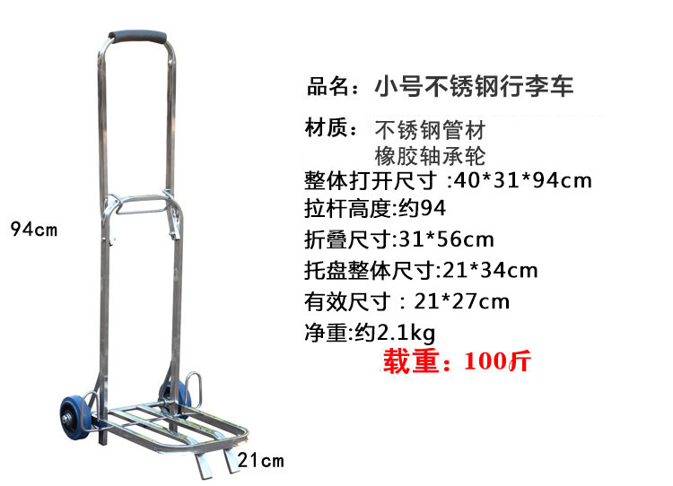杰适 Складной прицеп из нержавеющей стали, багажная тележка, чемодан на колесиках, портативная продуктовая тележка, корзина для покупок