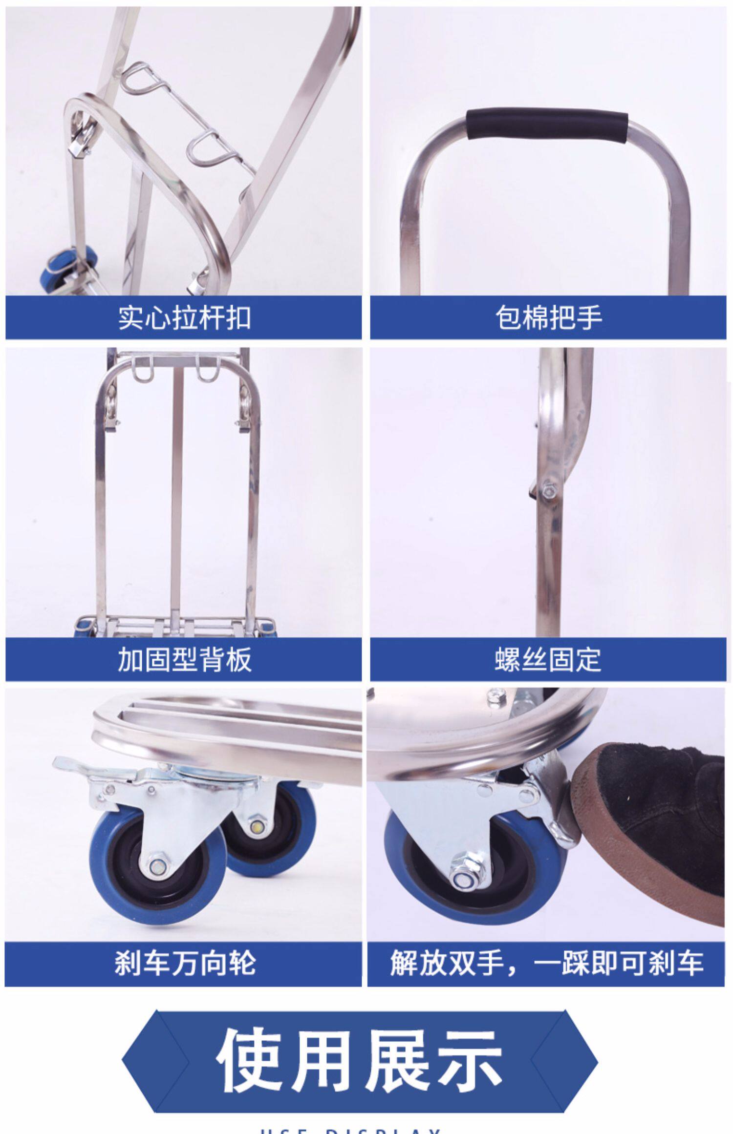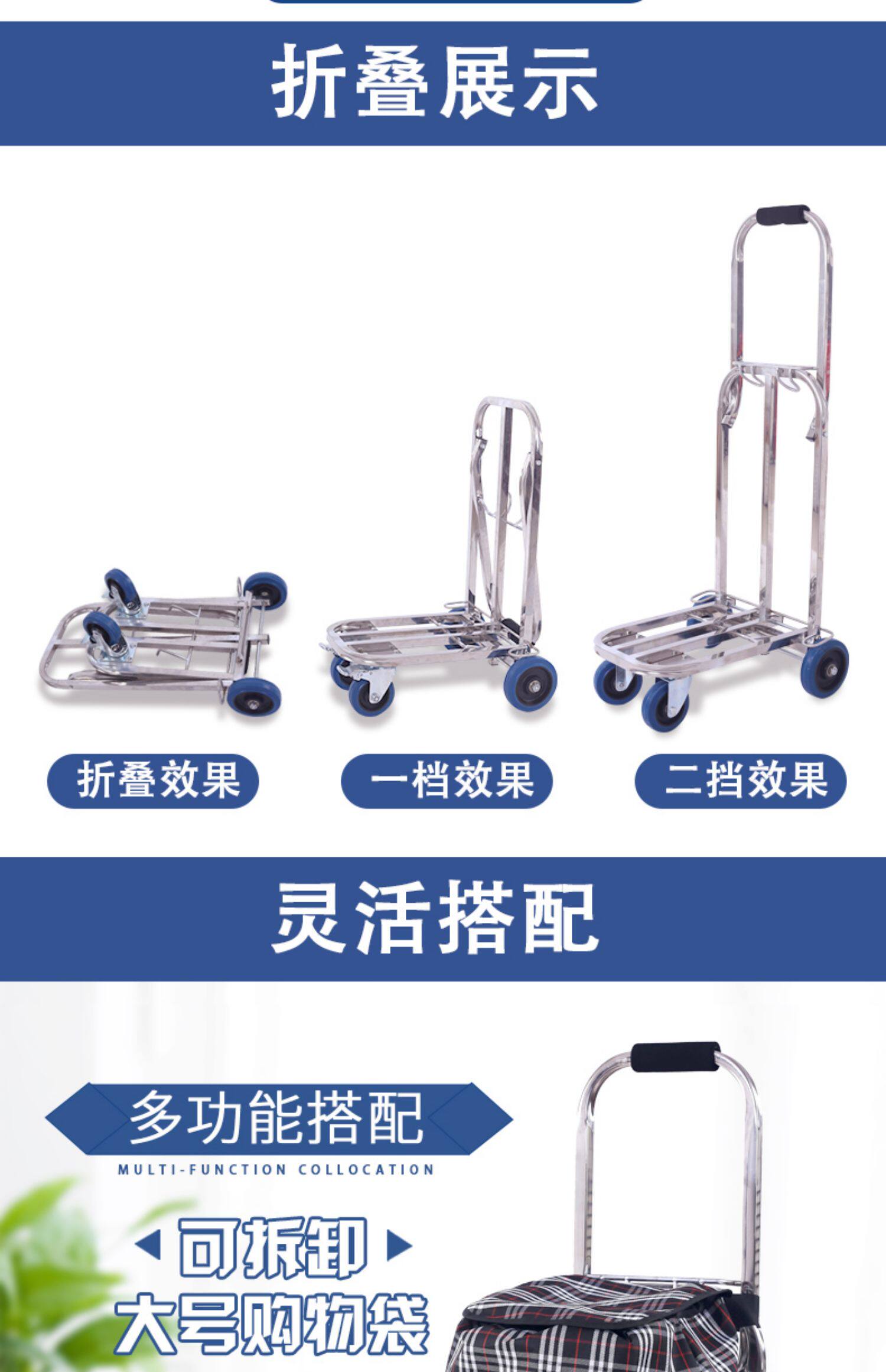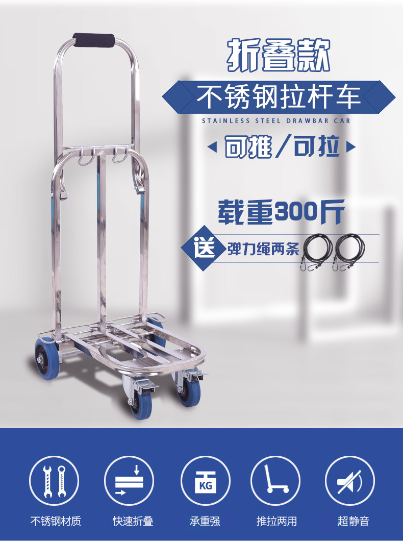 Портативная складная багажная тележка из нержавеющей стали, цвет