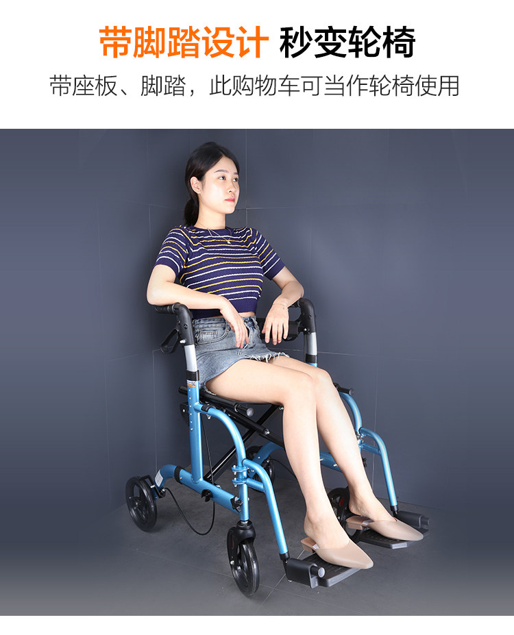 Ходунки для пожилых людей, корзина для покупок, педали, складная тележка с сидением