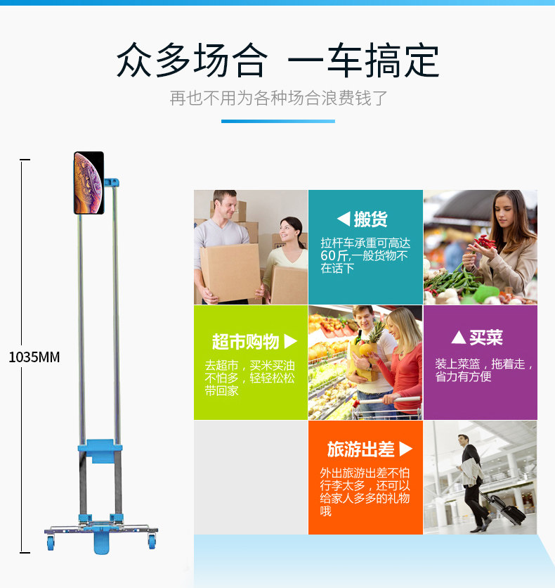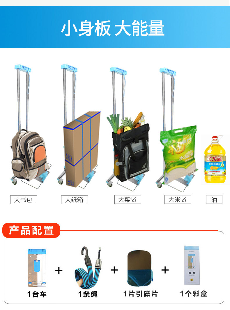 Складной чемодан, портативная багажная тележка, прицеп