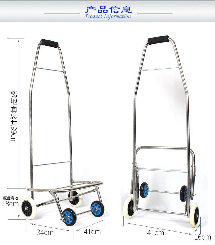 Корзина для покупок из нержавеющей стали, багажная тележка, тканевый мешок