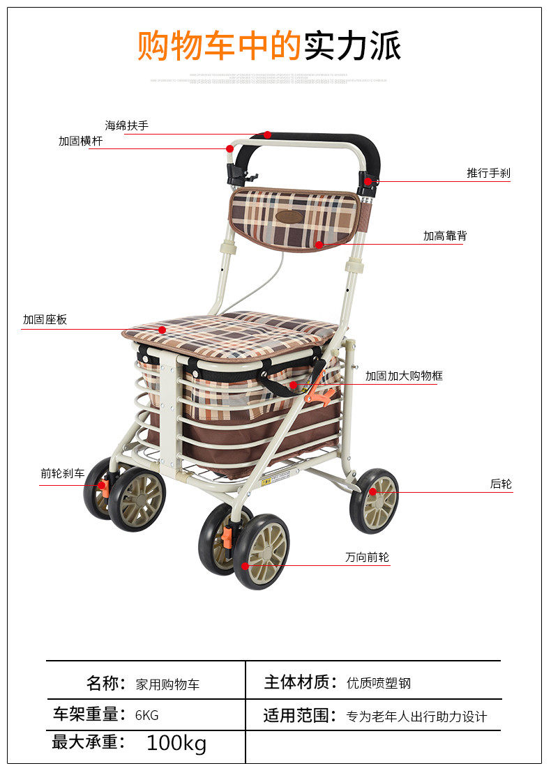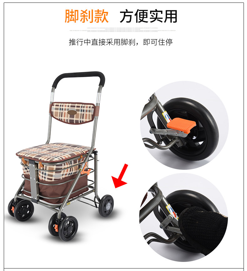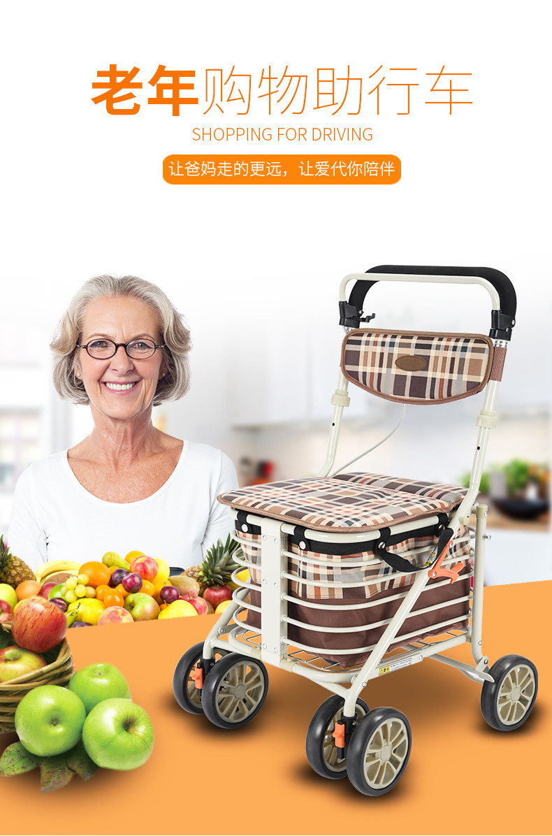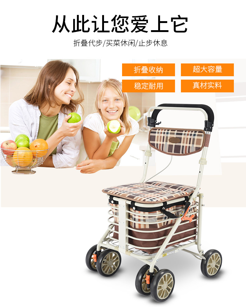 Корзина для покупок с сидением, складные ходунки, продуктовая тележка