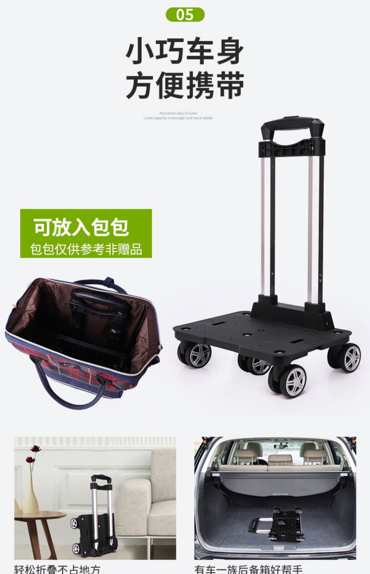 Школьный рюкзак для школьников, металлический универсальный чемодан, портативная складная тележка для домашнего использования, алюминиевый сплав, поворотные колеса