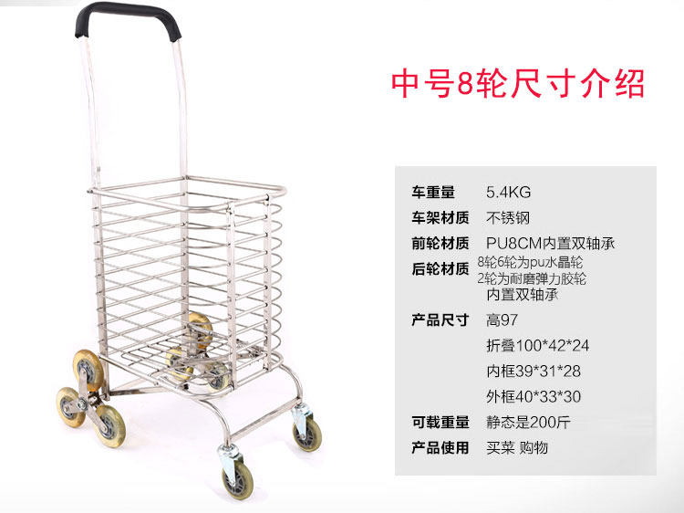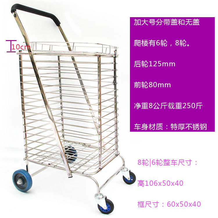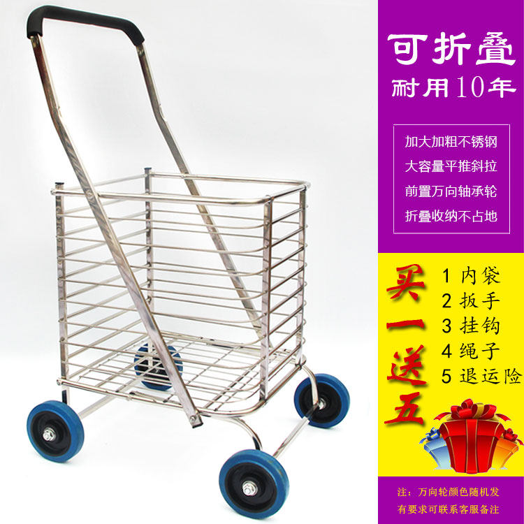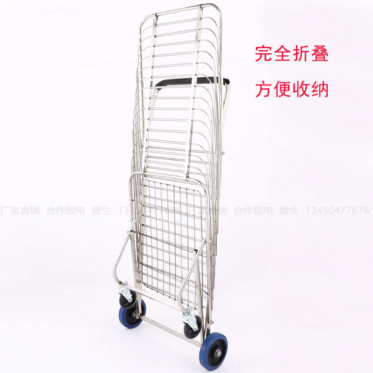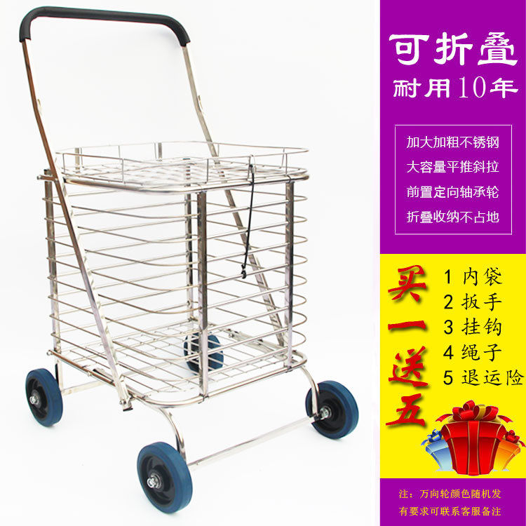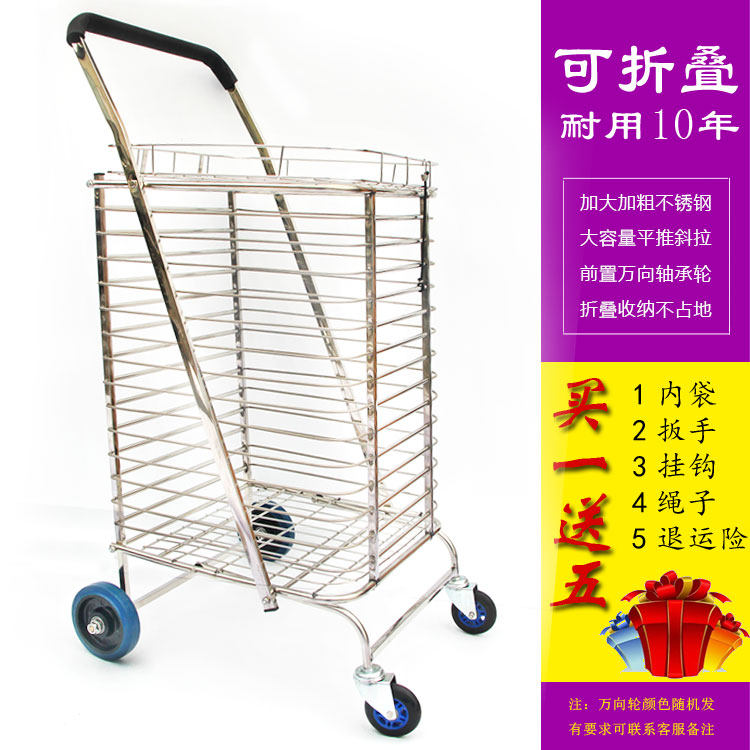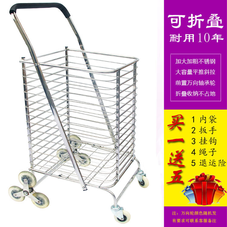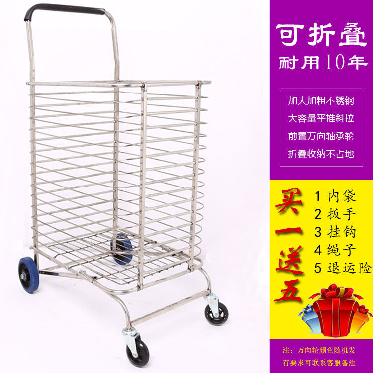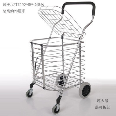 Большая складная корзина для покупок, портативная вместительная и большая продуктовая тележка из нержавеющей стали