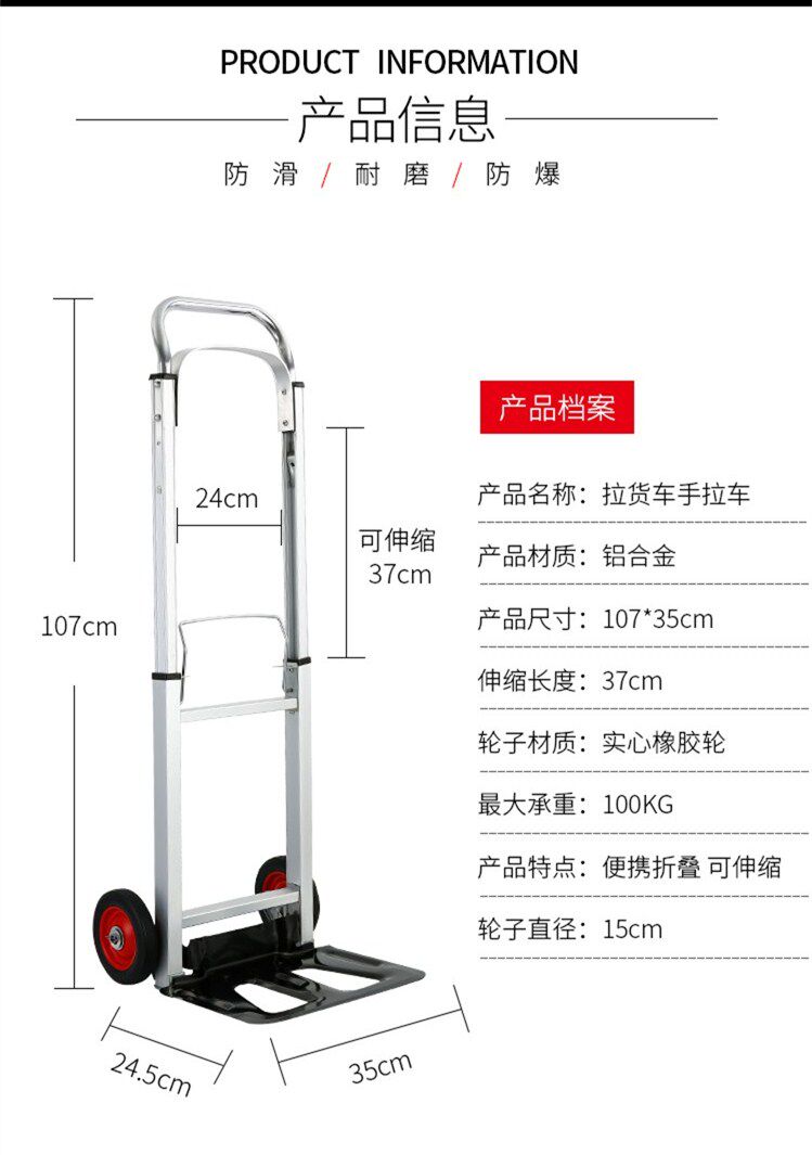 Складная металлическая багажная тележка, портативный прицеп, чемодан, алюминиевый сплав