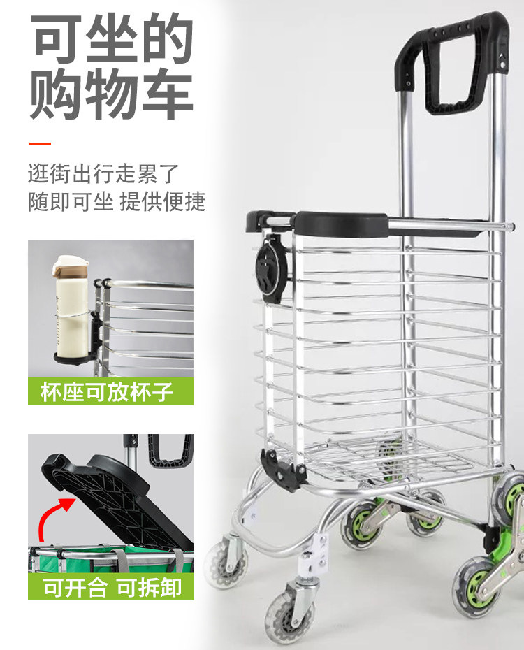 Корзина для покупок с аксессуарами, продуктовая тележка для пожилых людей, складная крышка с сидением
