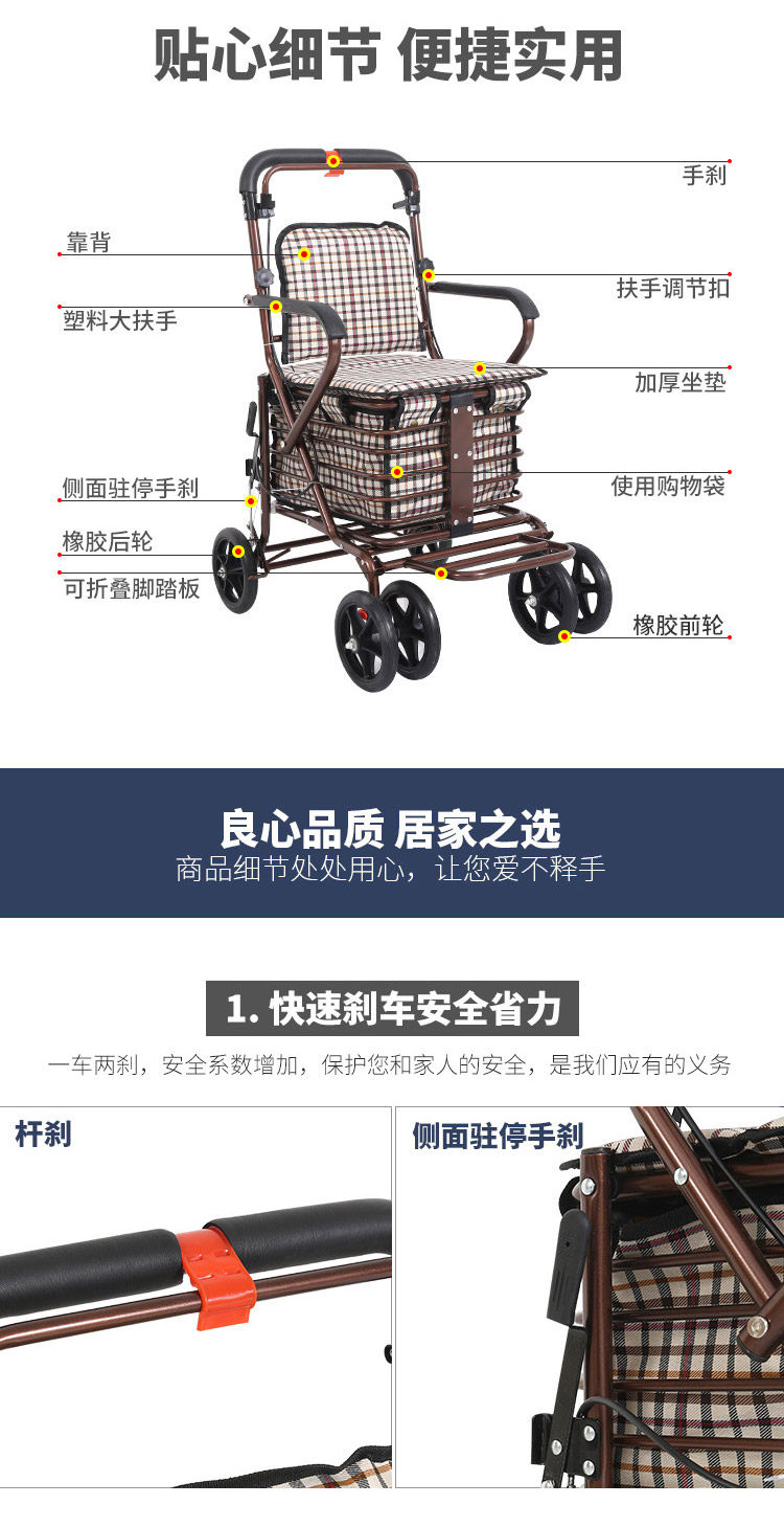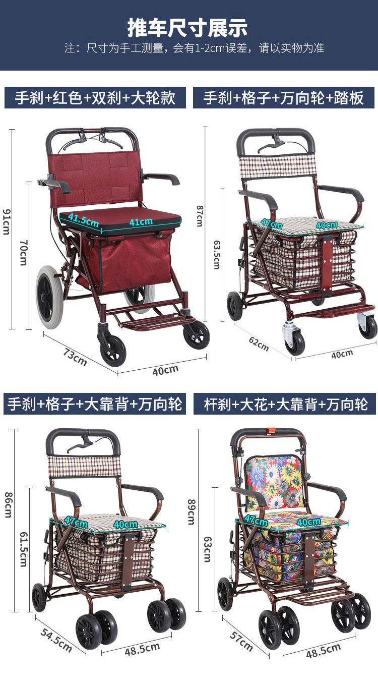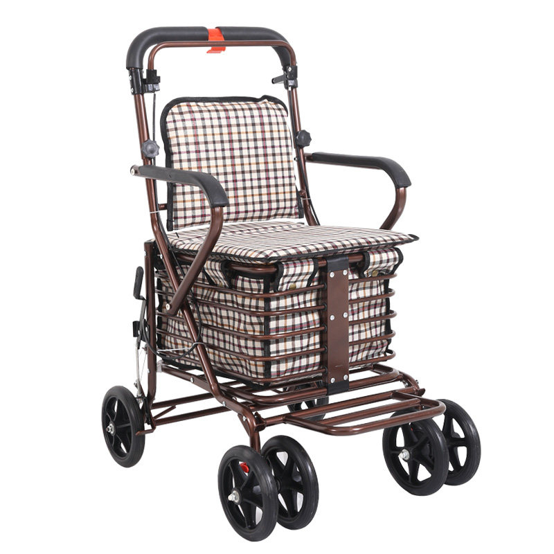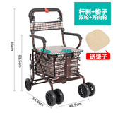 Складные ходунки для пожилых людей, корзина для покупок, сиденье, кресло с сидением на четырех колесах, тележка