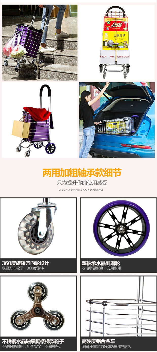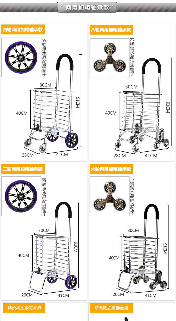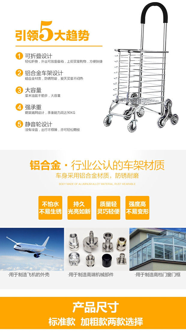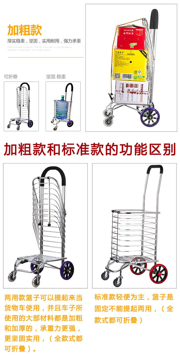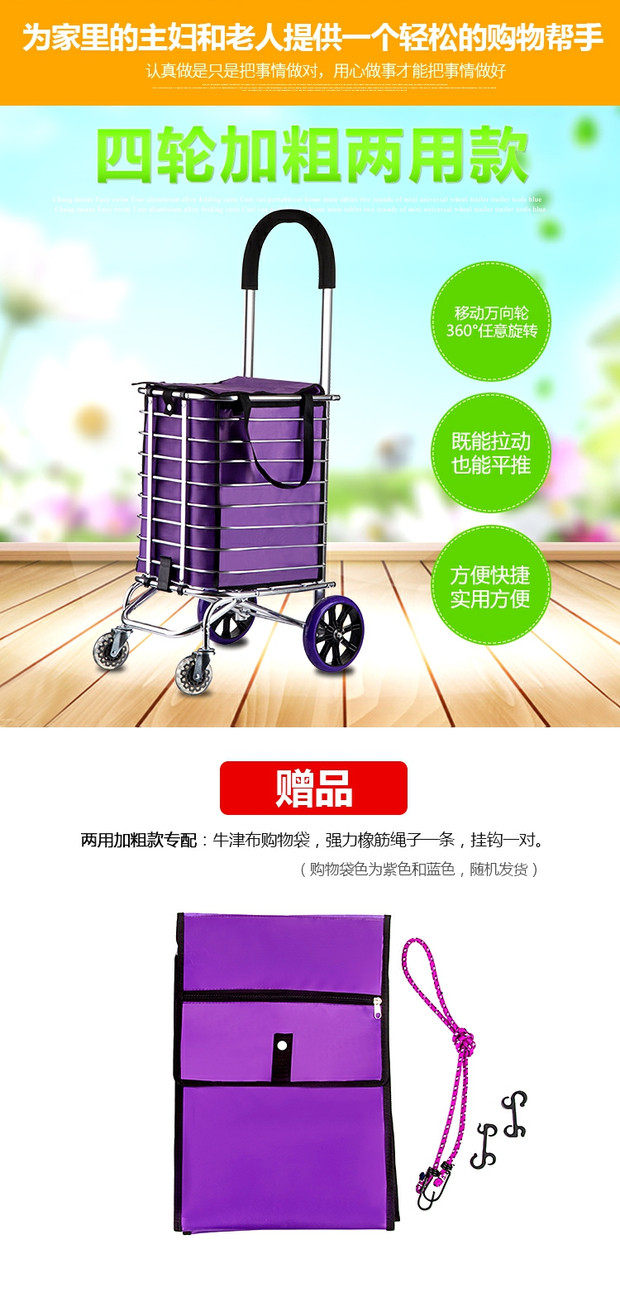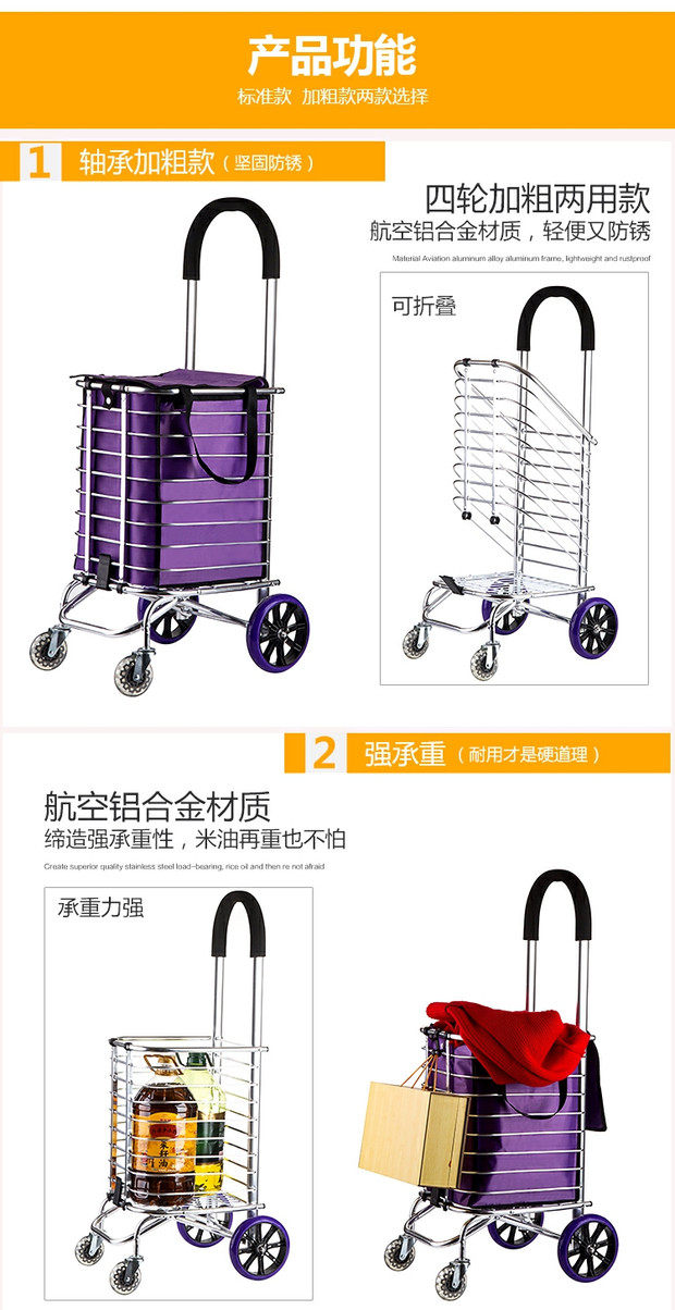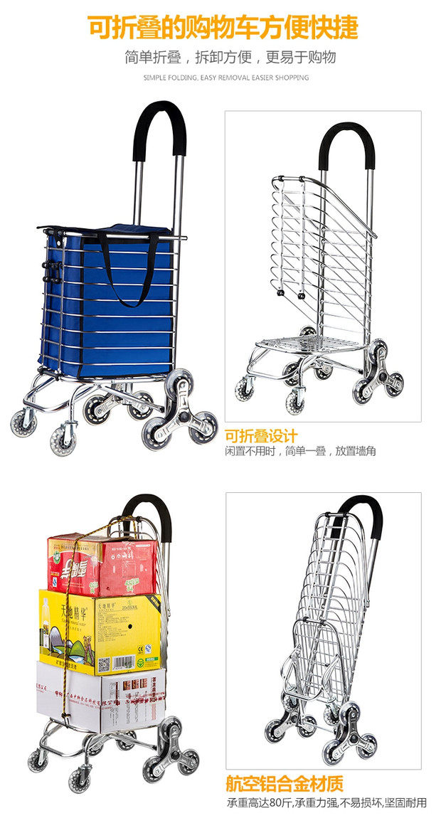 Складная портативная металлическая продуктовая тележка, чемодан для пожилых людей, прицеп, алюминиевый сплав