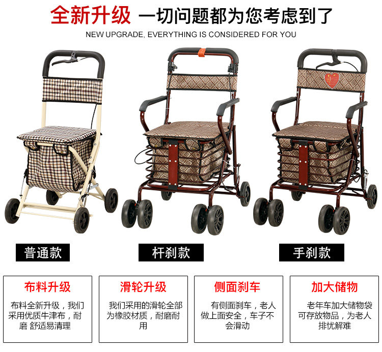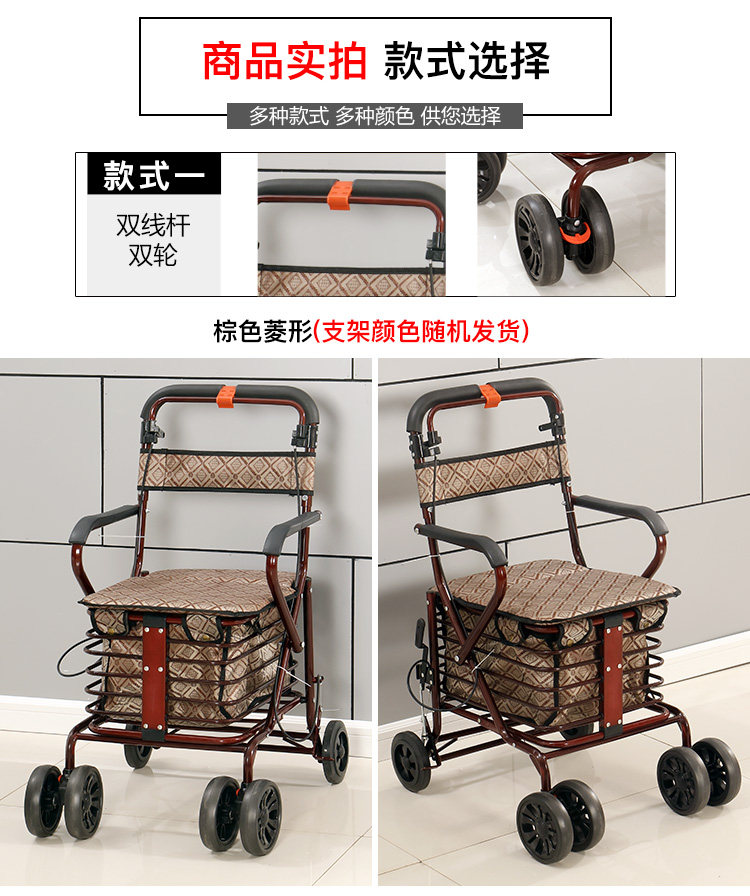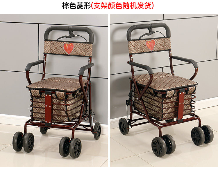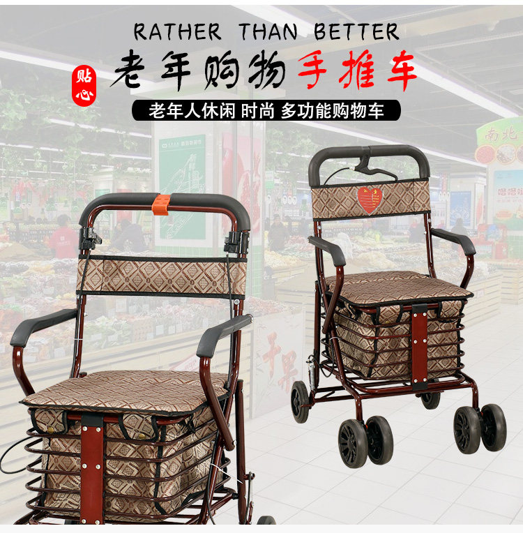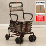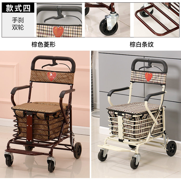 Тележка для пожилых людей с сидением, корзина для покупок, сиденье, складное кресло, ходунки на четырех колесах