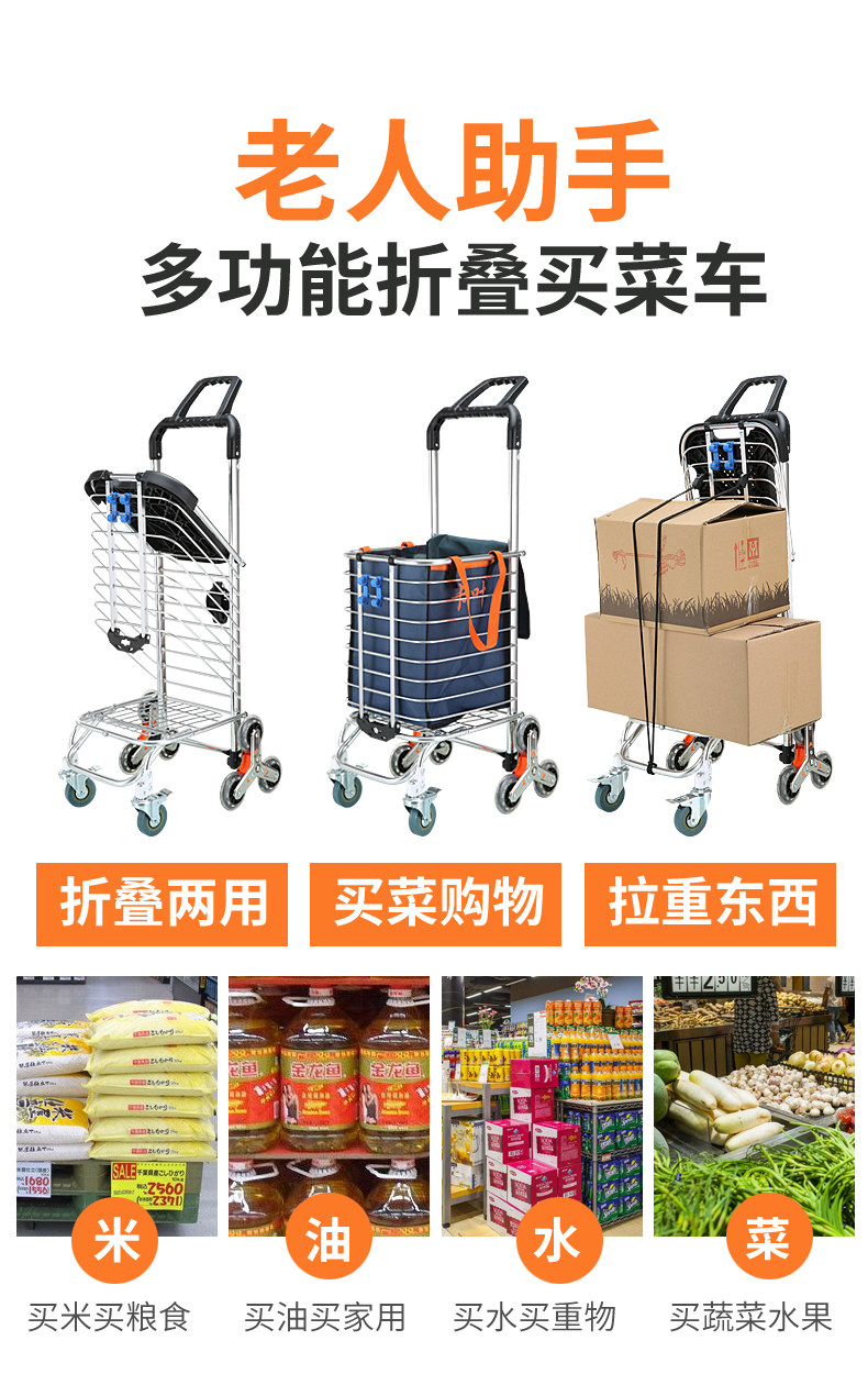 Продуктовая тележка, складная корзина для покупок, портативный чемодан, прицеп для пожилых людей для домашнего использования