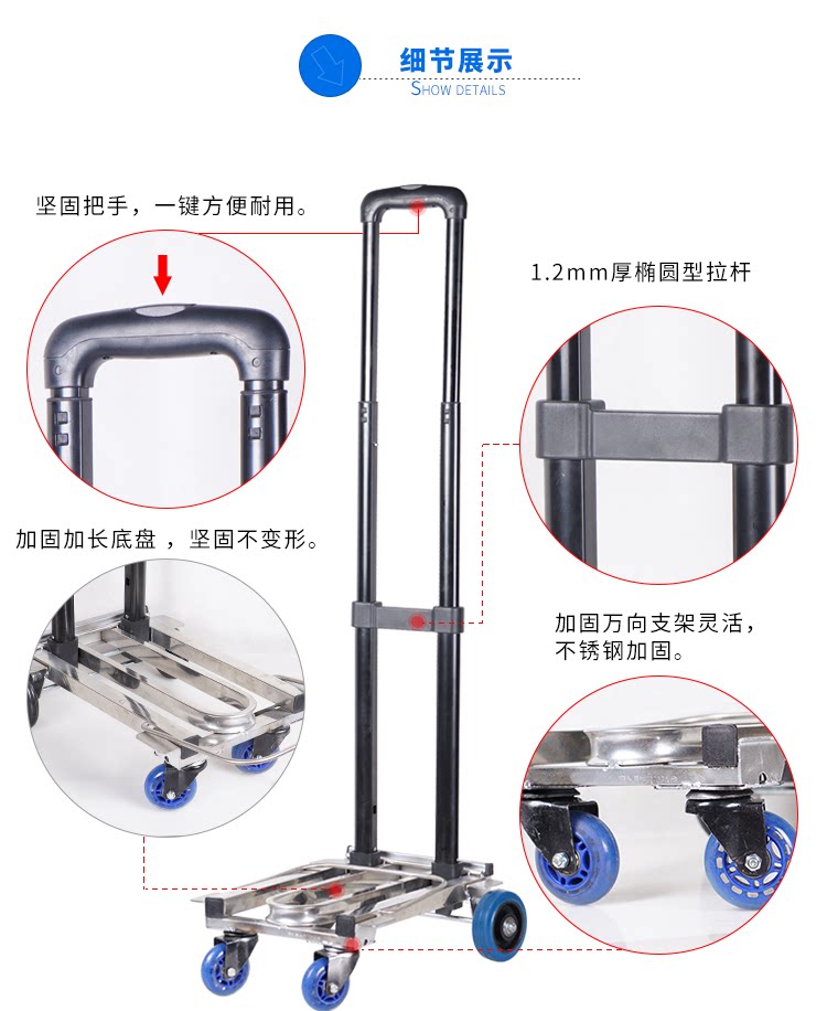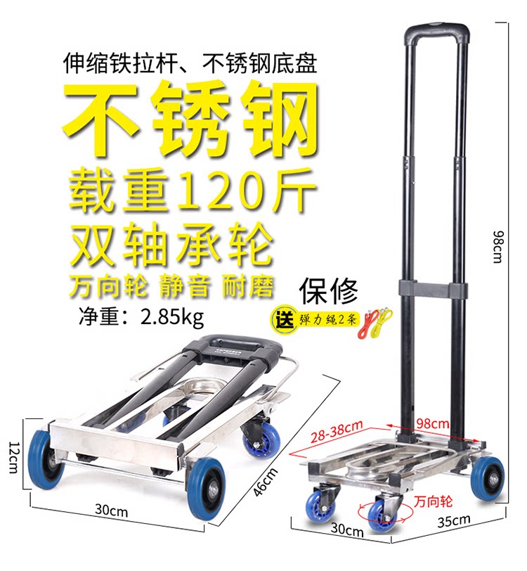Складной портативный чемодан из нержавеющей стали, универсальная багажная тележка, корзина для покупок