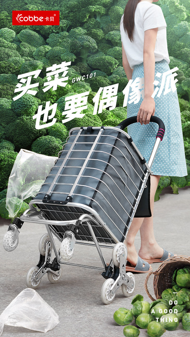 Продуктовая тележка, складная портативная корзина для покупок для домашнего использования, прицеп с лестницей для пожилых людей