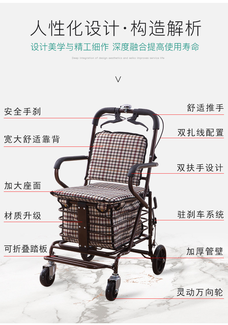 Портативная тележка, складные ходунки, корзина для покупок с сидением для домашнего использования