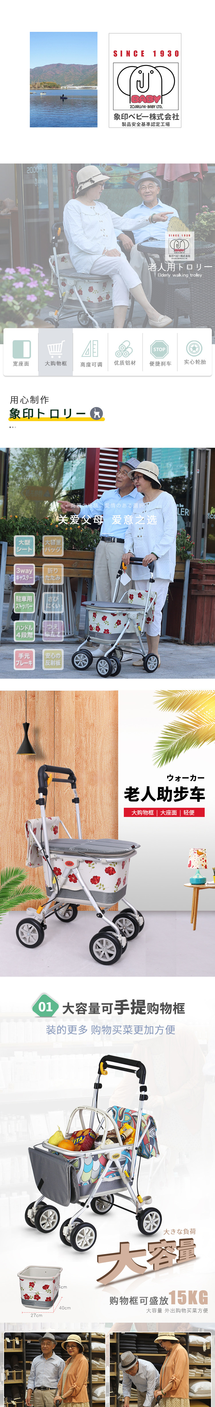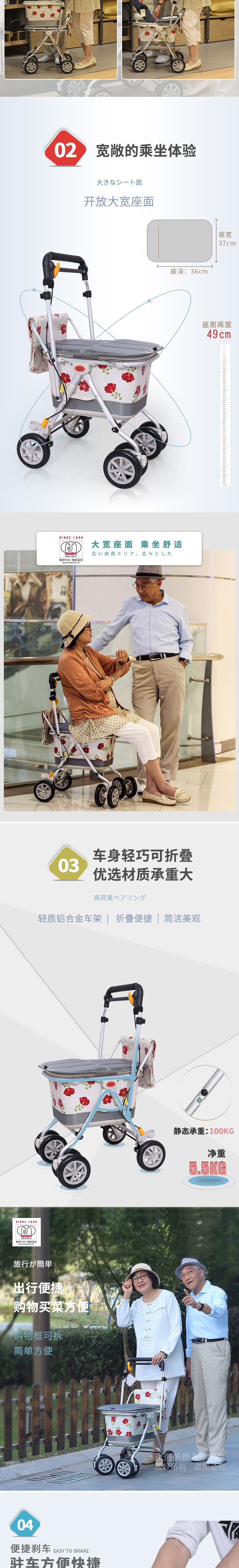 Складное японское металлическое вспомогательное портативное кресло для ходьбы, продуктовая тележка, алюминиевый сплав