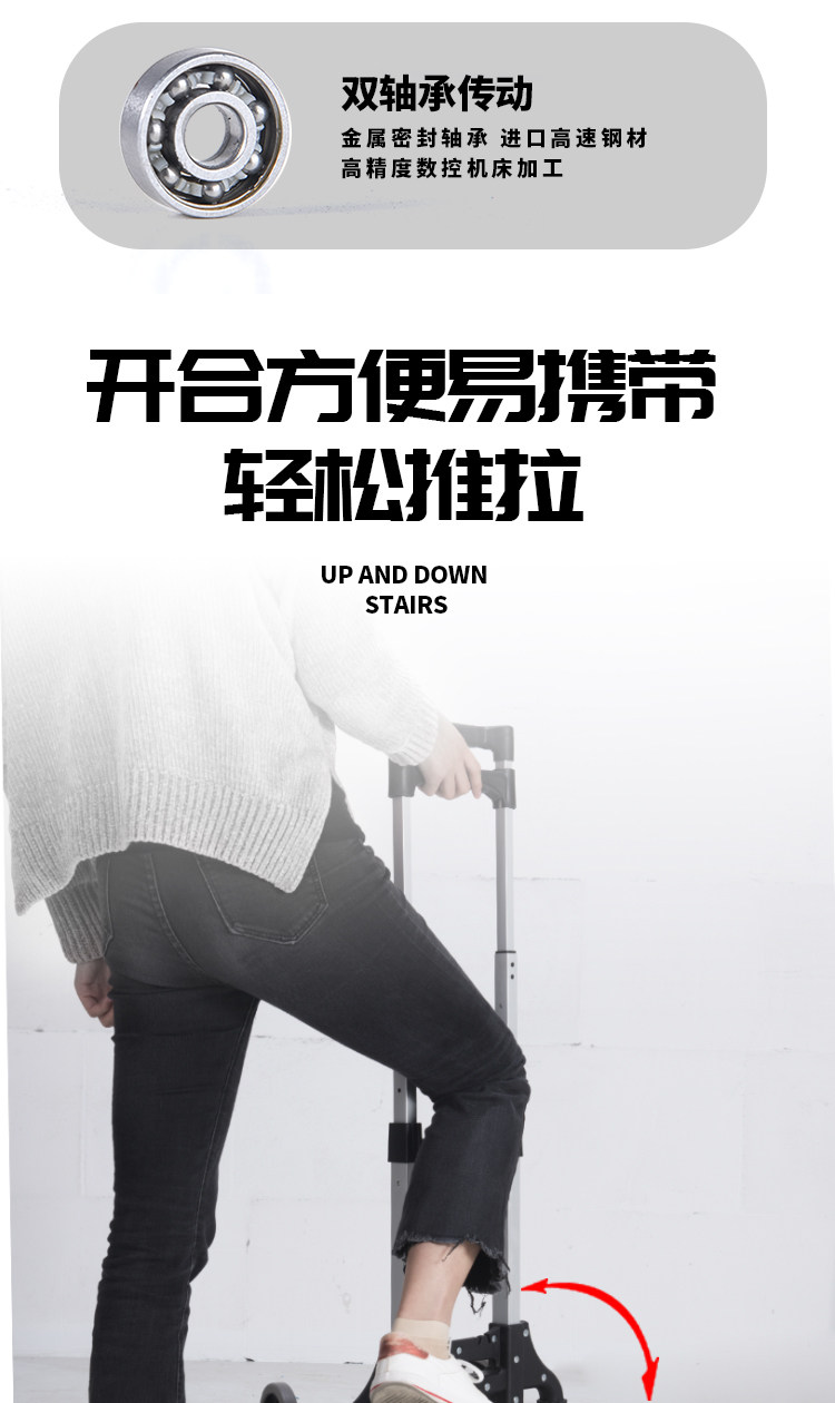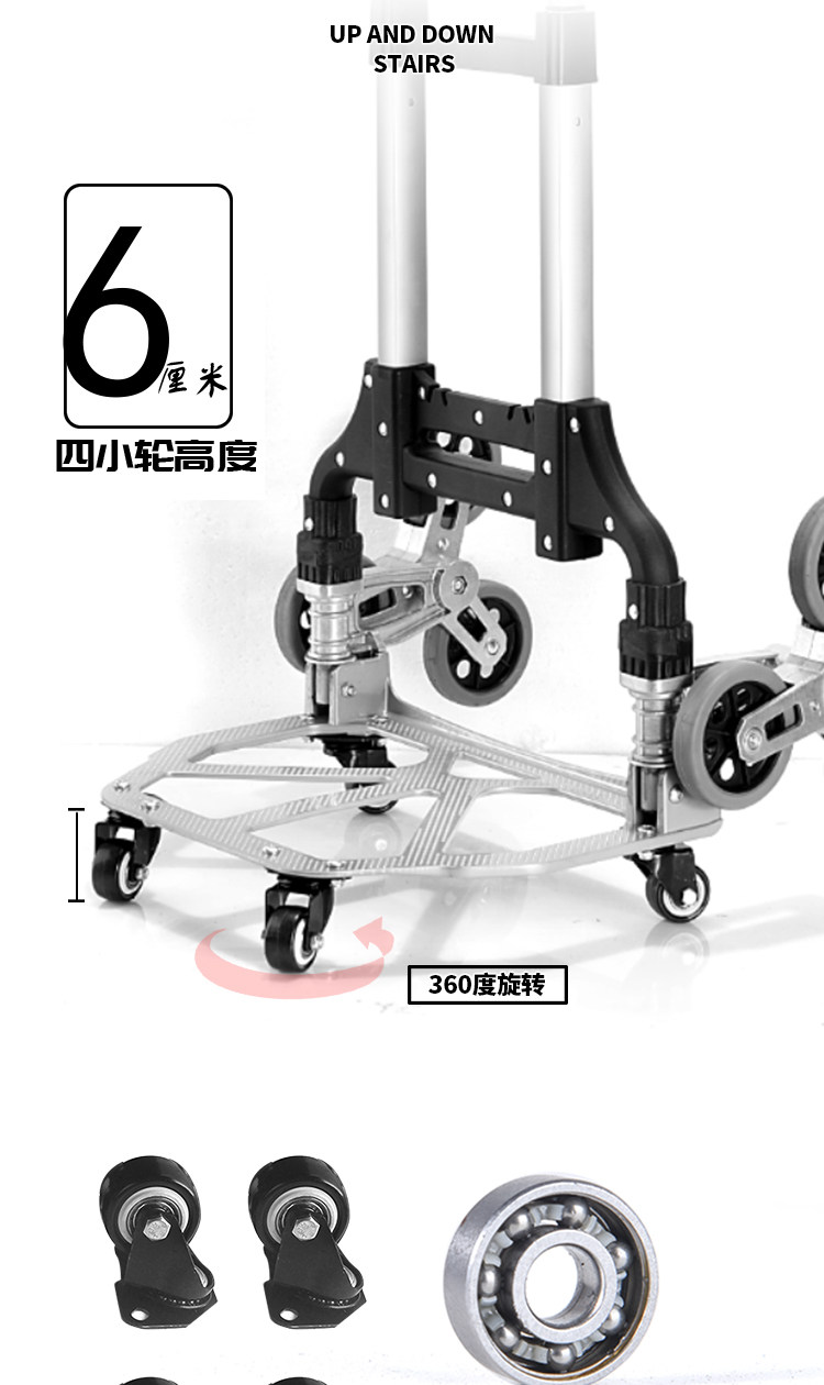 Портативный чемодан для домашнего использования, складная корзина для покупок, металлическая продуктовая тележка с лестницей, алюминиевый сплав