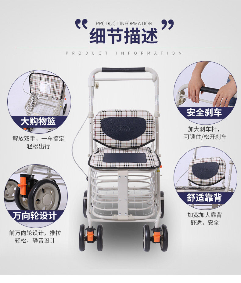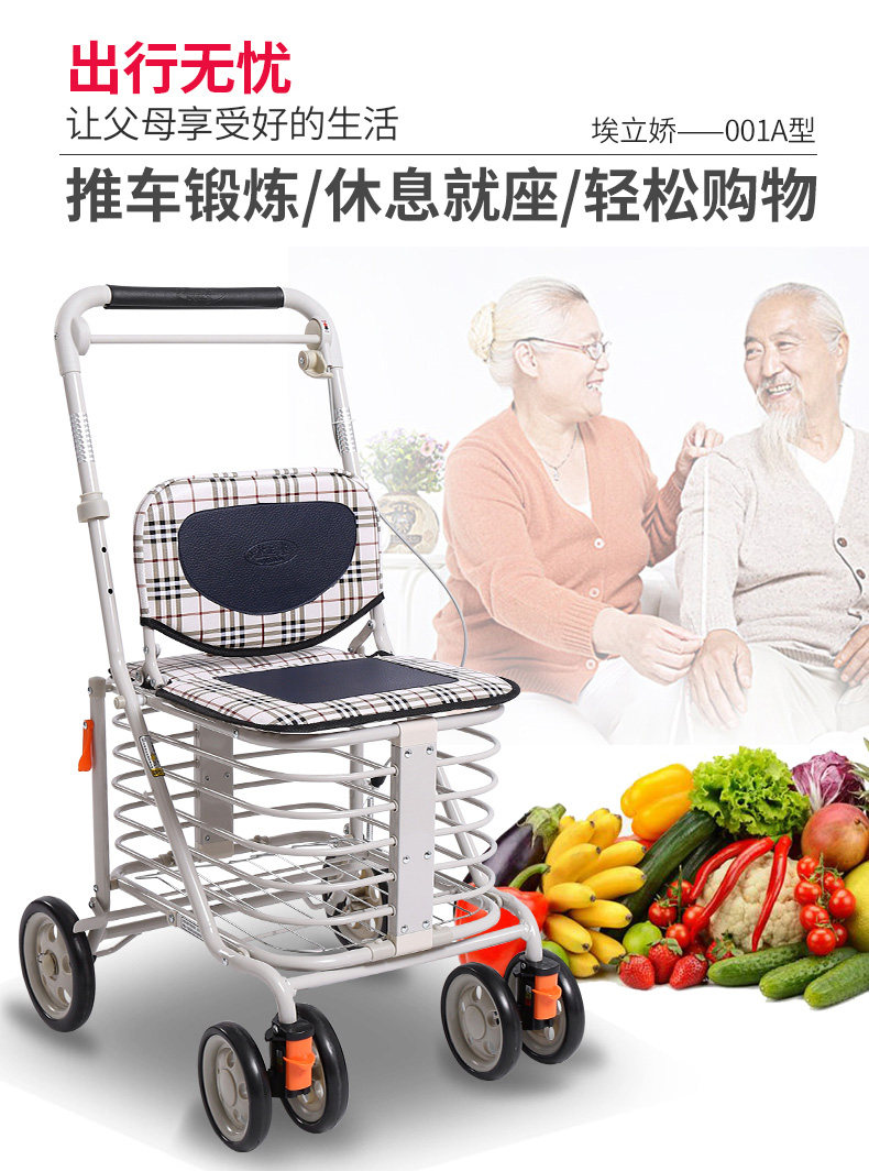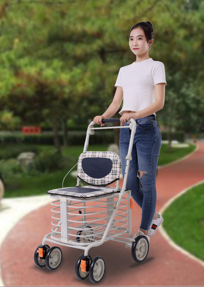 Ходунки для пожилых людей, корзина для покупок, сиденье, кресло с сидением на четырех колесах, тележка