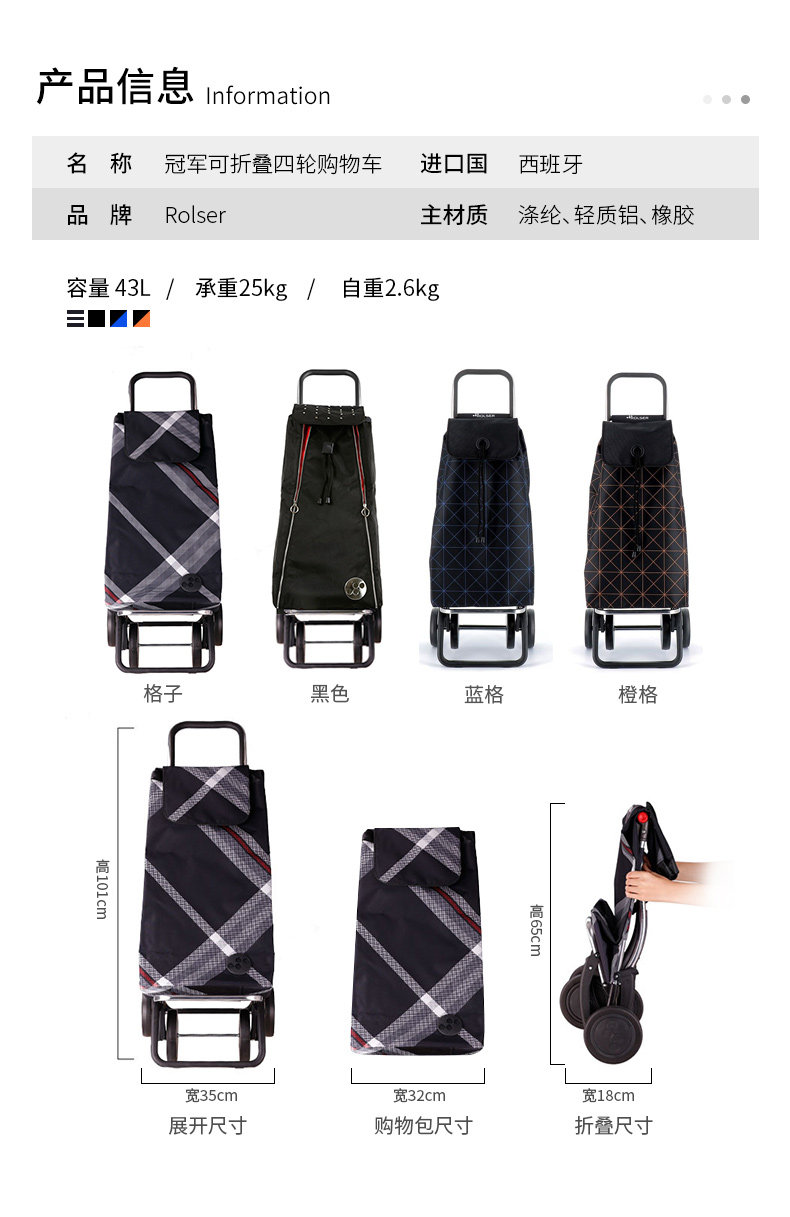 Импортная складная корзина для покупок, портативный чемодан, продуктовая тележка для домашнего использования, Испания