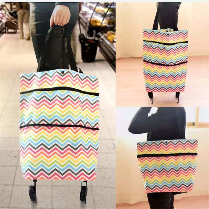 TikTok, портативная складная продуктовая тележка, корзина для покупок, чемодан, колесо, ткань оксфорд