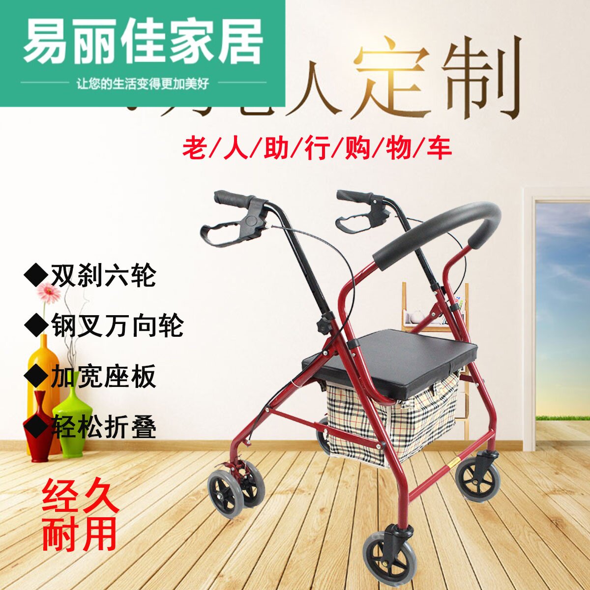 易丽佳 Корзина для покупок с сидением, складная продуктовая тележка, ходунки