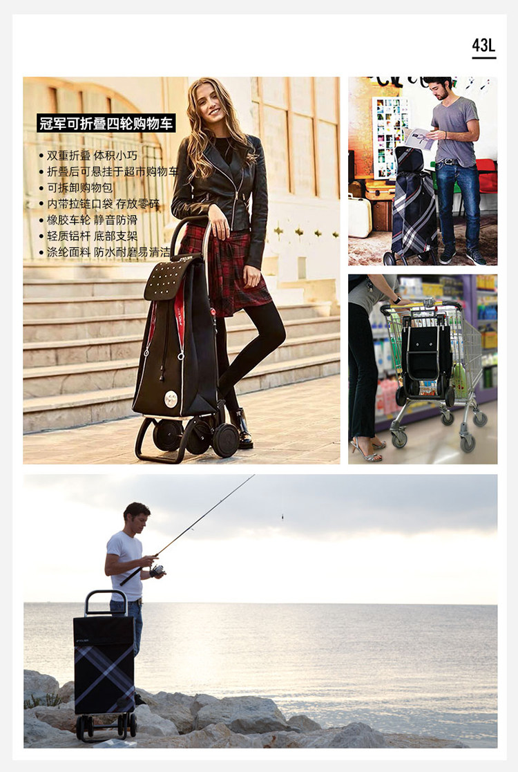 - Чемпионы могут быть сложены с четырьмя колесами, можно расширить 43 литра