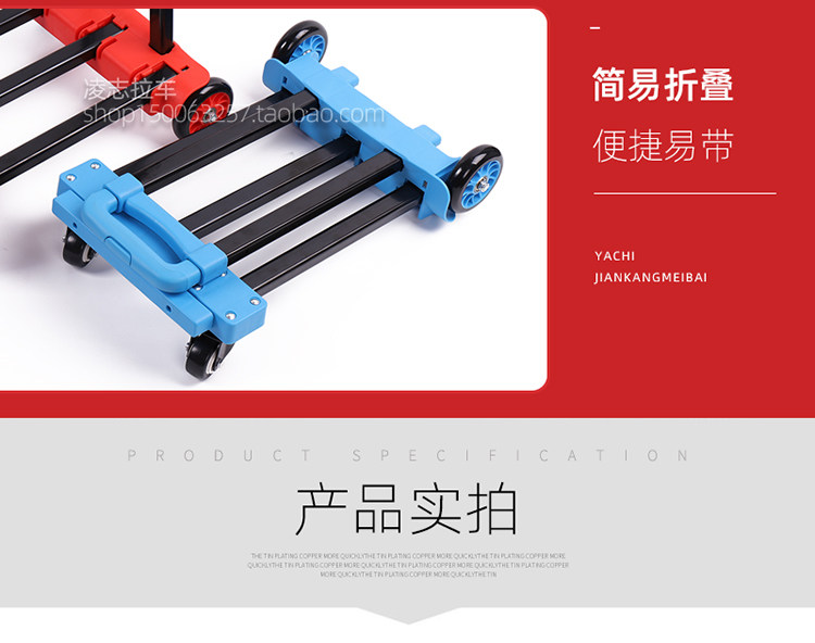 Складная портативная тележка для коммерческого использования на четырех колесах, чемодан, багажный прицеп