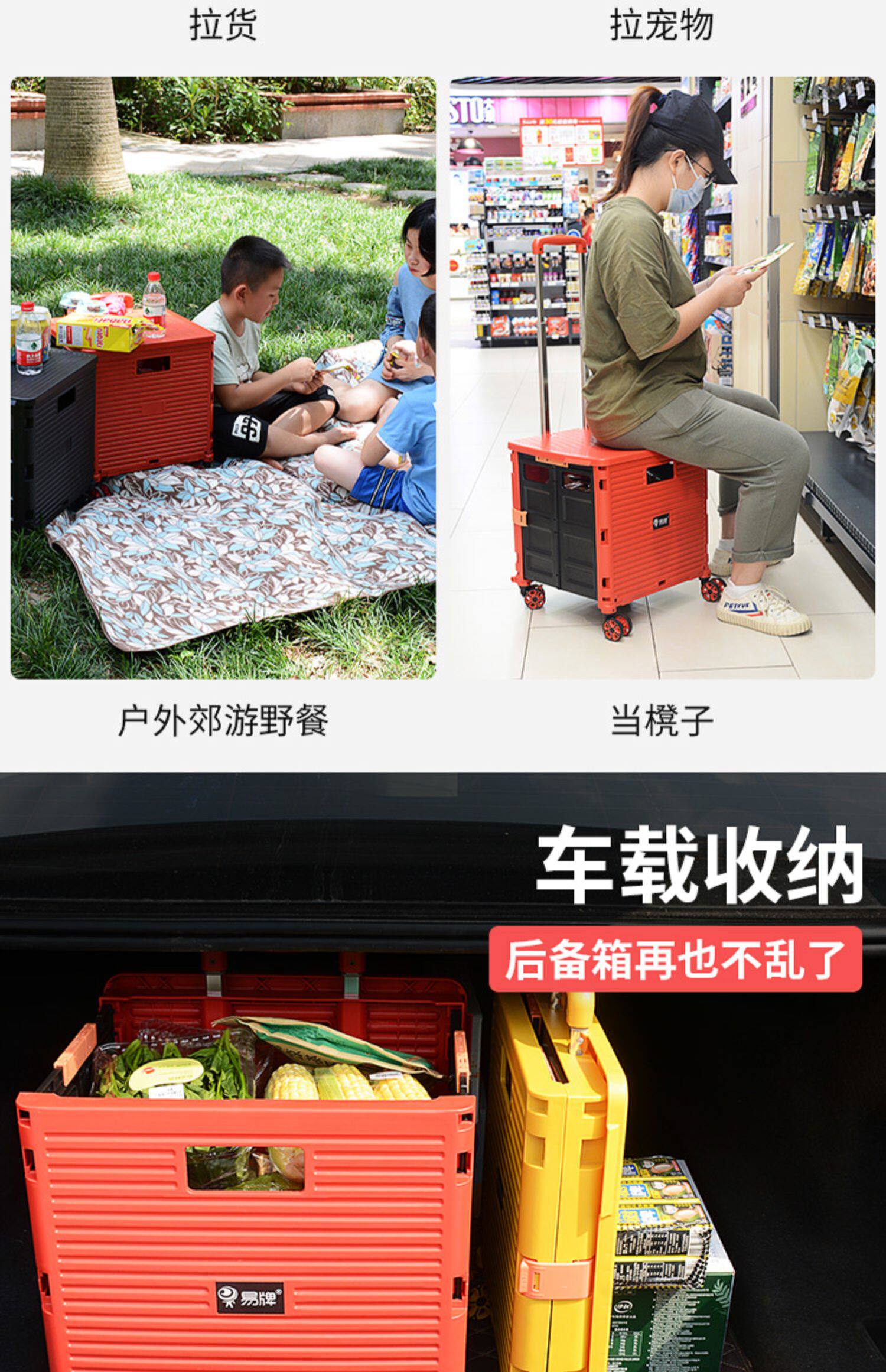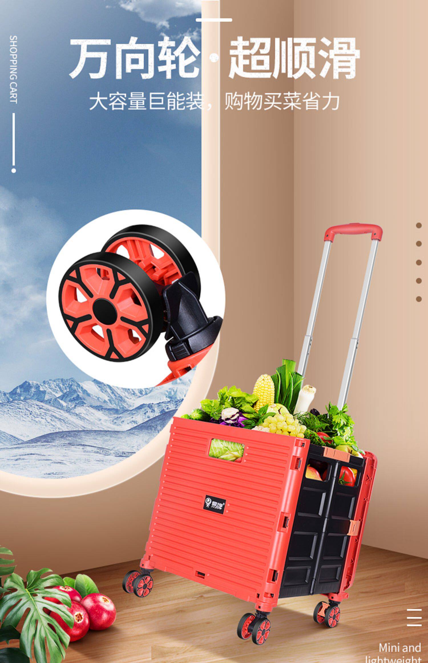 Складная корзина для покупок для домашнего использования, портативный чемодан, универсальная тележка, поворотные колеса