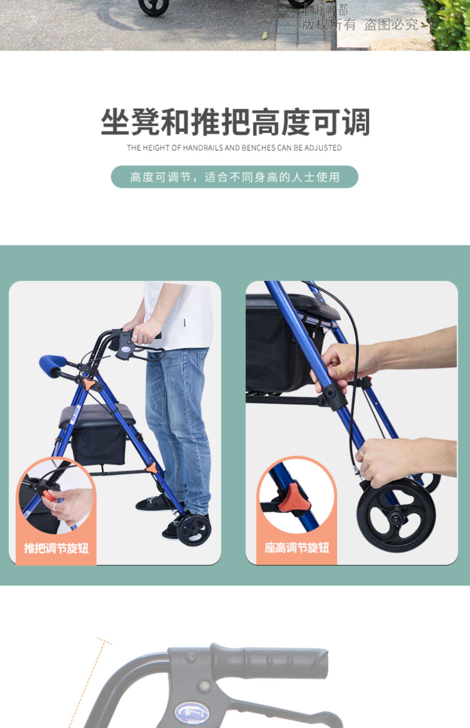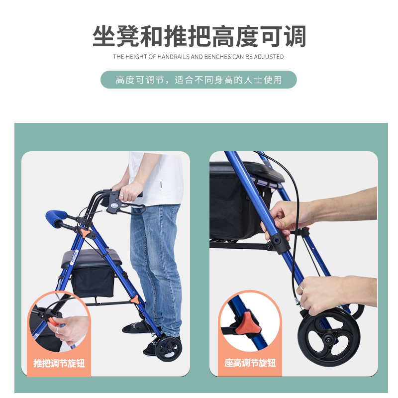 Складная портативная тележка с сидением, ходунки, корзина для покупок