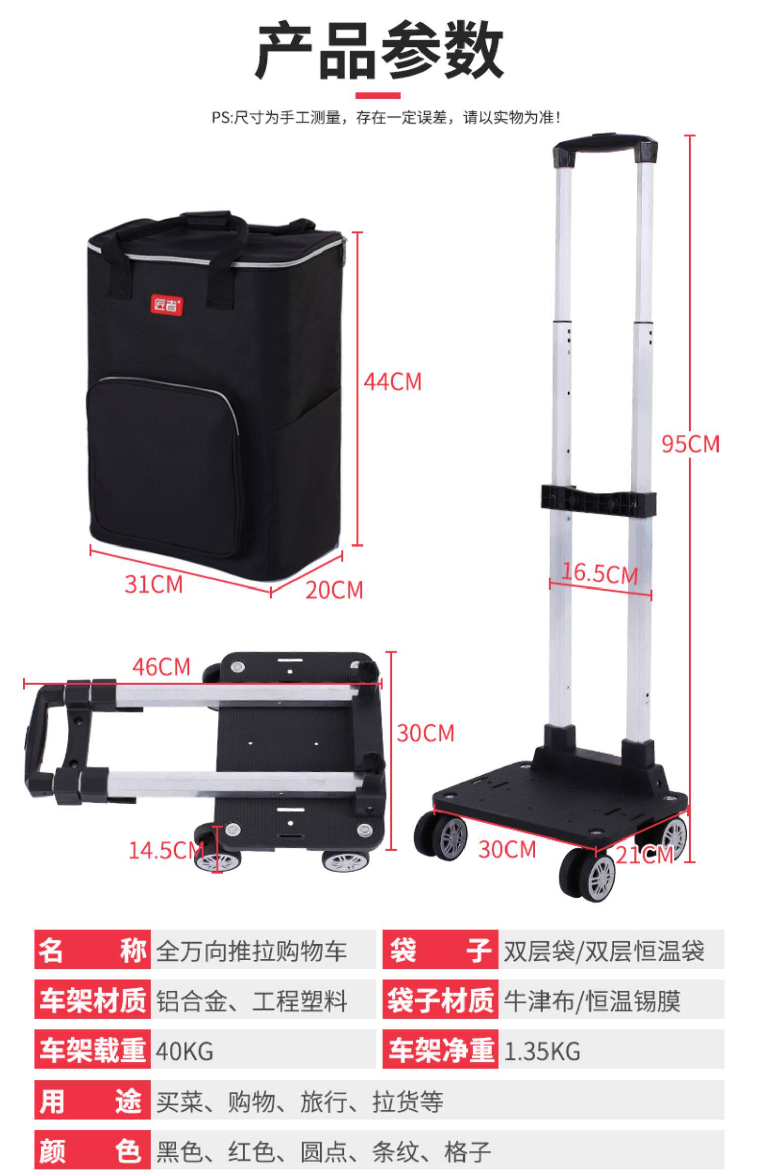 匠者 Складная корзина для покупок, портативный прицеп, чемодан, продуктовая тележка для домашнего использования