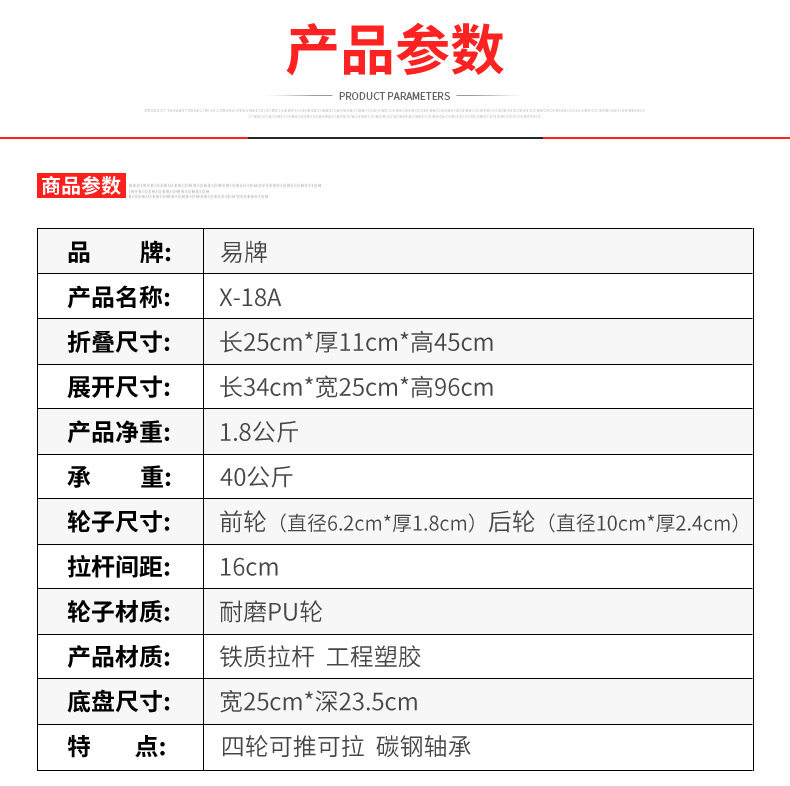易牌 Чемодан для школьников, маленькая багажная тележка, прицеп на четырех колесах