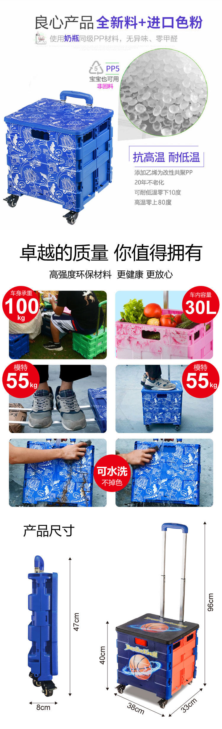 Складная портативная универсальная корзина для покупок для домашнего использования, продуктовая тележка с сидением, чемодан, система хранения
