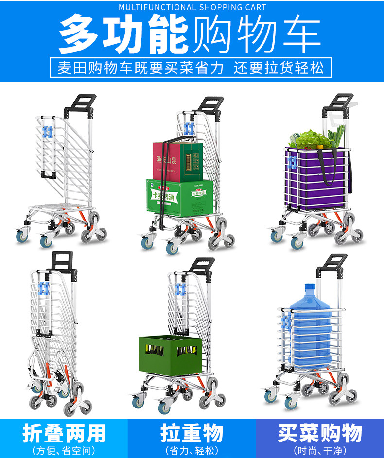 Портативная корзина для покупок, продуктовая тележка, складной чемодан для пожилых людей для домашнего использования, прицеп