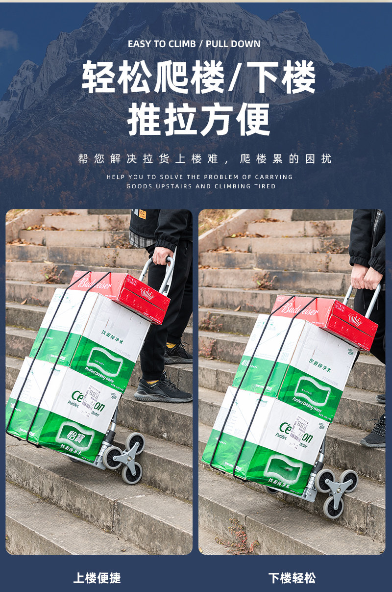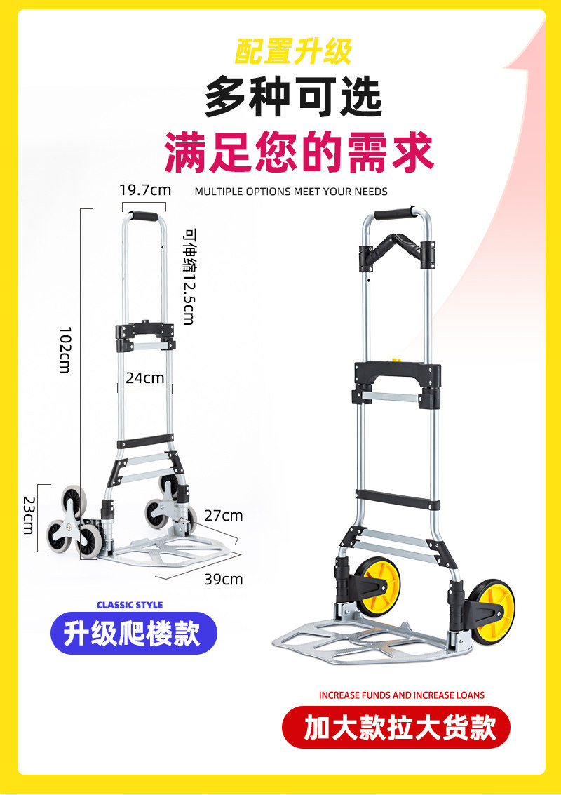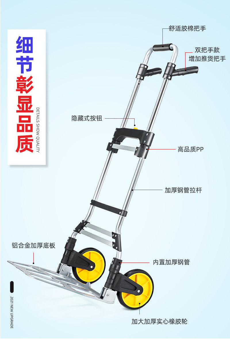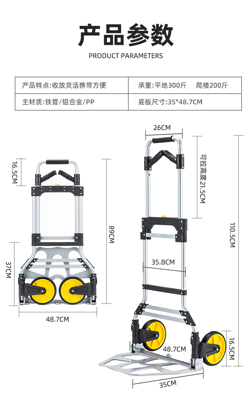 Складной портативный прицеп из нержавеющей стали, тележка с лестницей, увеличенная толщина